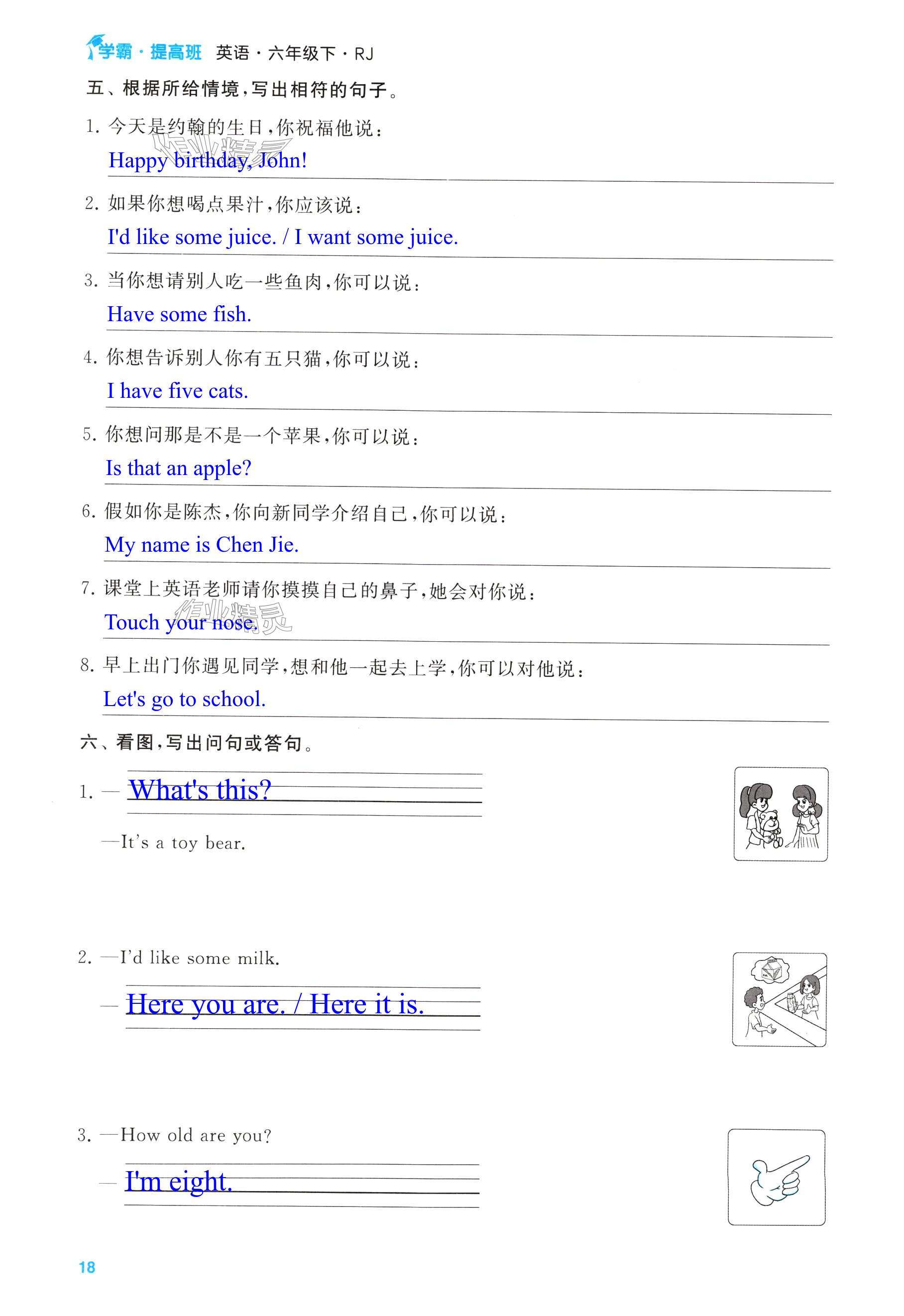 注:目前有些书本章节名称可能整理的还不是很完善,但都是按照顺序排列的,请同学们按照顺序仔细查找。练习册 2024年经纶学典提高班六年级英语下册人教版 答案主要是用来给同学们做完题方便对答案用的,请勿直接抄袭。