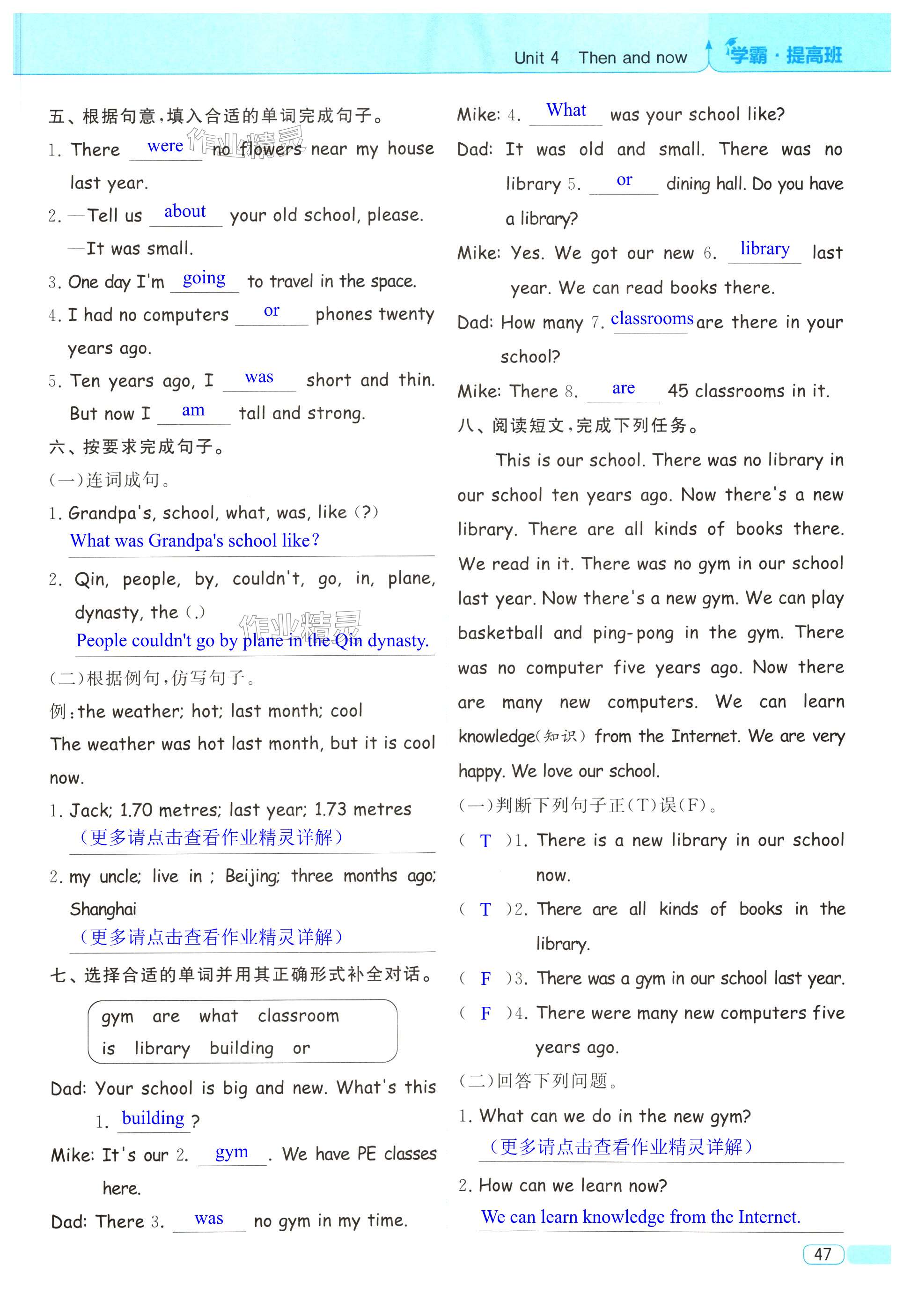 注:目前有些书本章节名称可能整理的还不是很完善,但都是按照顺序排列的,请同学们按照顺序仔细查找。练习册 2024年经纶学典提高班六年级英语下册人教版 答案主要是用来给同学们做完题方便对答案用的,请勿直接抄袭。