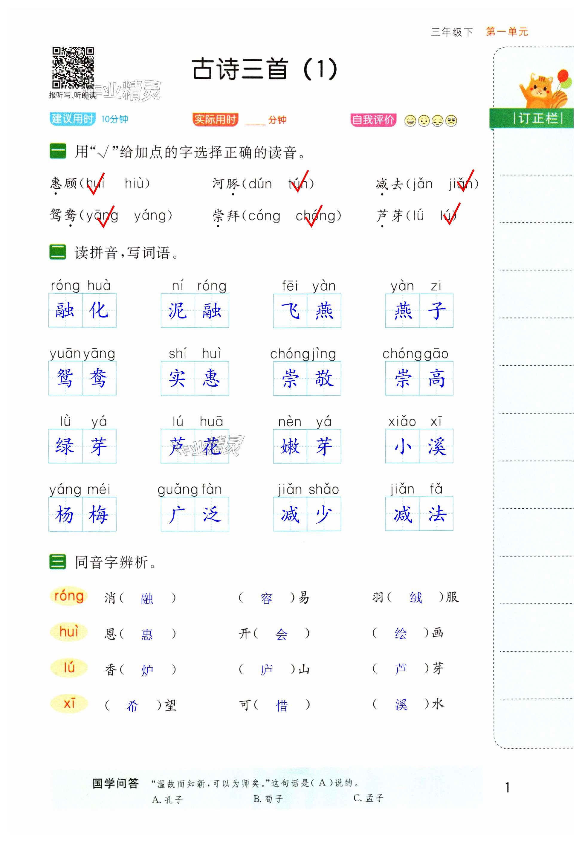 注:目前有些书本章节名称可能整理的还不是很完善,但都是按照顺序排列的,请同学们按照顺序仔细查找。练习册 2024年默写大通关三年级语文下册人教版 答案主要是用来给同学们做完题方便对答案用的,请勿直接抄袭。