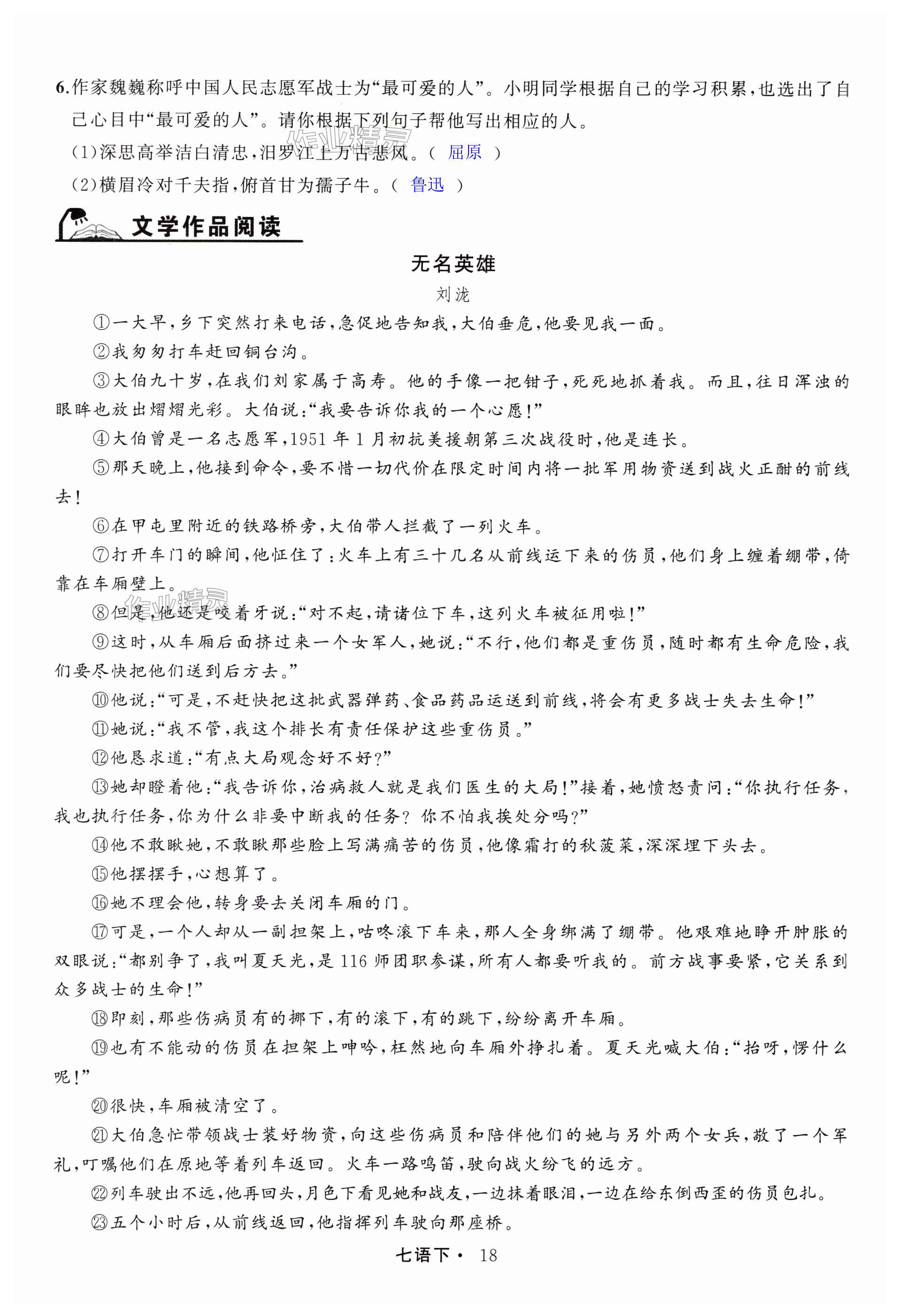 注:目前有些书本章节名称可能整理的还不是很完善,但都是按照顺序排列的,请同学们按照顺序仔细查找。练习册 2024年名师面对面满分特训方案七年级语文下册人教版浙江专版 答案主要是用来给同学们做完题方便对答案用的,请勿直接抄袭。