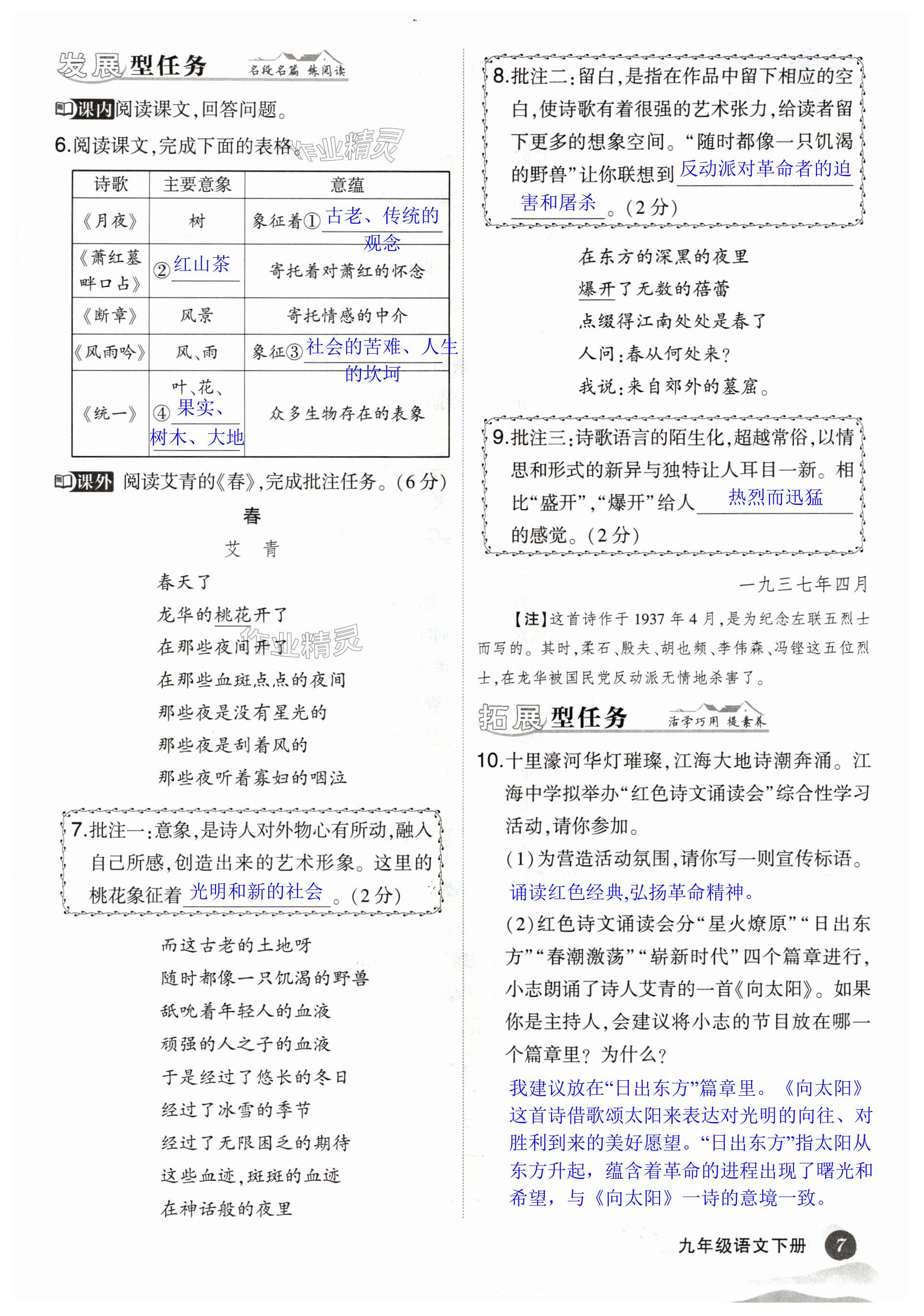 注:目前有些书本章节名称可能整理的还不是很完善,但都是按照顺序排列的,请同学们按照顺序仔细查找。练习册 2024年状元成才路创优作业九年级语文下册人教版 答案主要是用来给同学们做完题方便对答案用的,请勿直接抄袭。