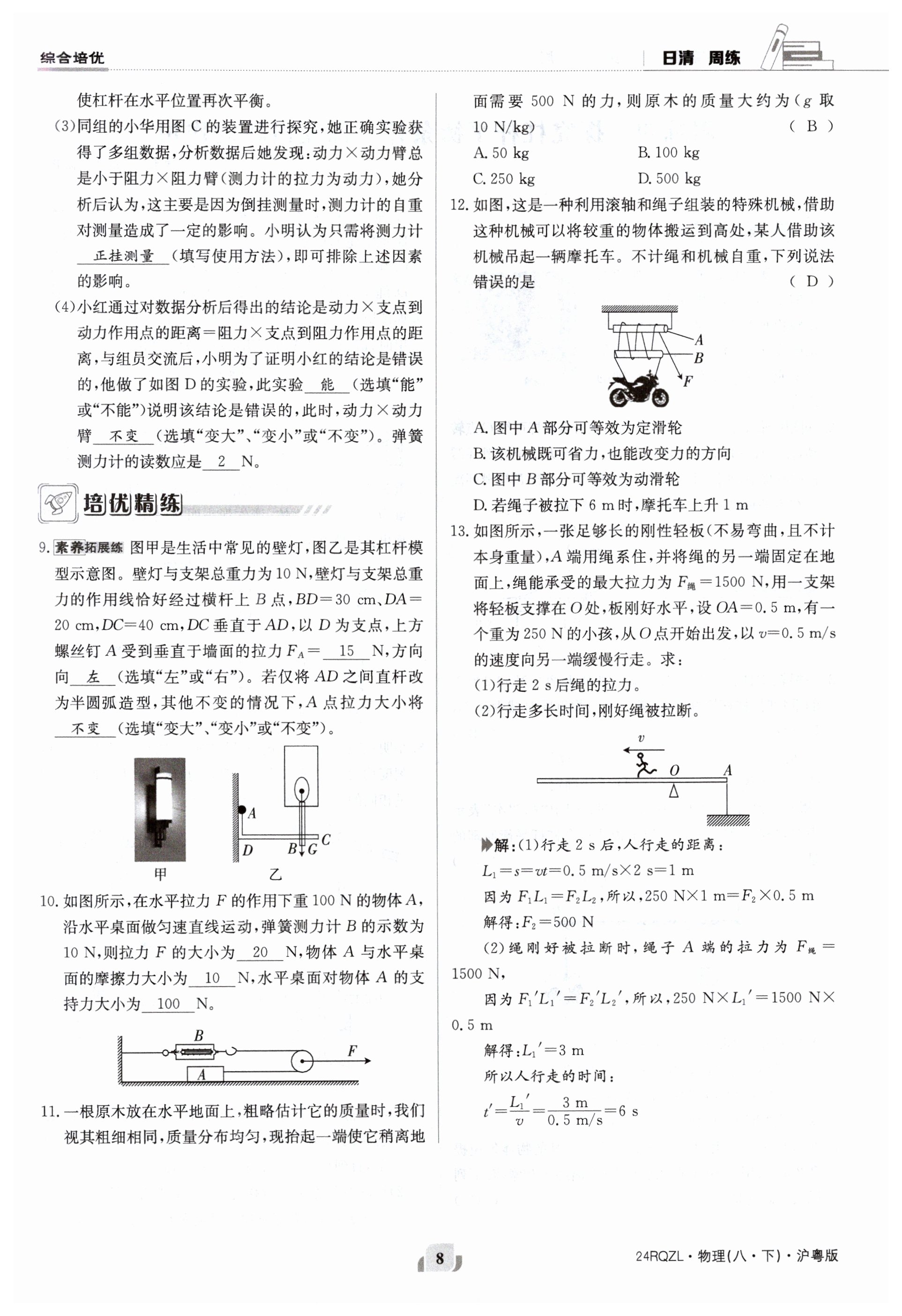 注:目前有些书本章节名称可能整理的还不是很完善,但都是按照顺序排列的,请同学们按照顺序仔细查找。练习册 2024年日清周练八年级物理下册沪粤版 答案主要是用来给同学们做完题方便对答案用的,请勿直接抄袭。