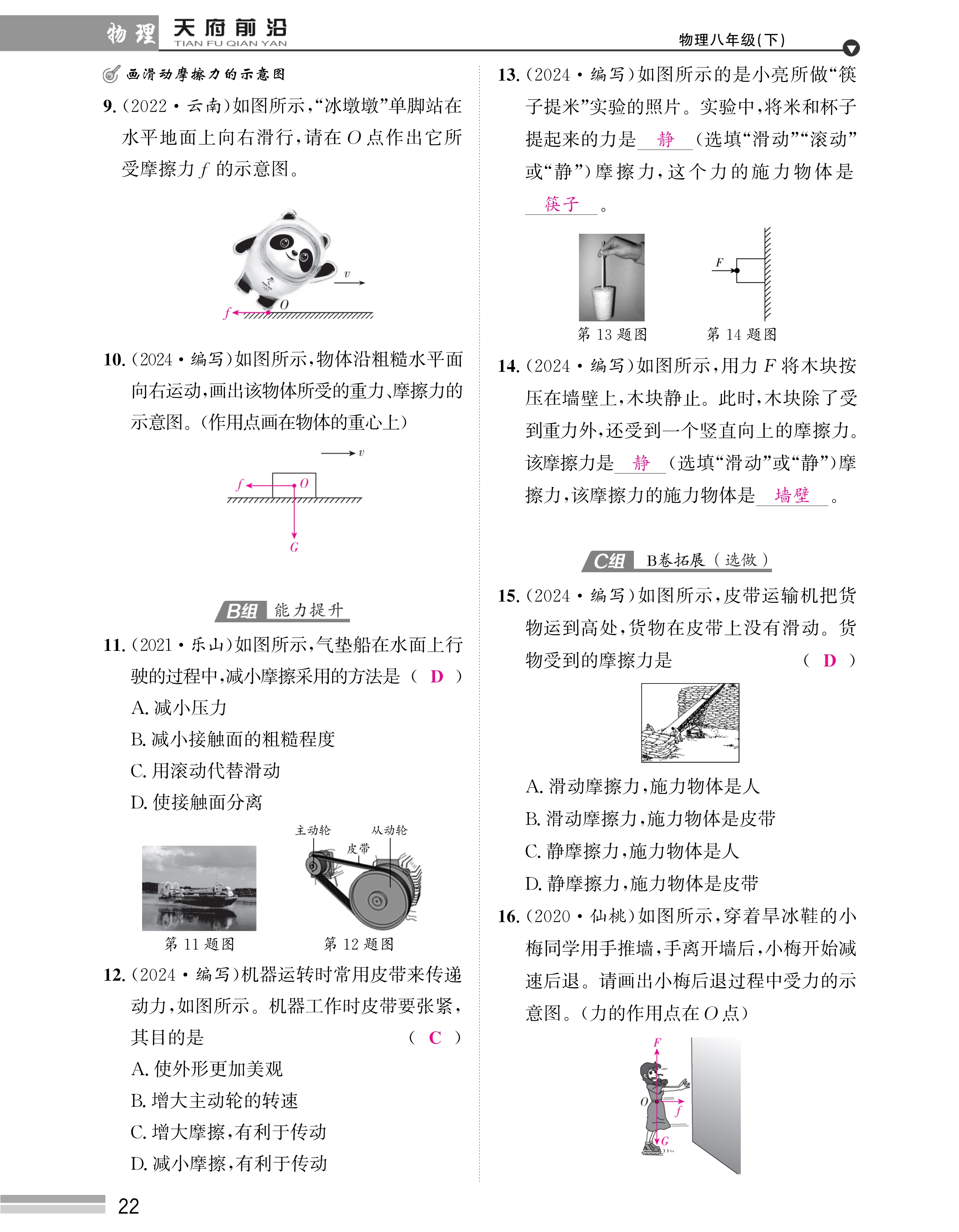注:目前有些书本章节名称可能整理的还不是很完善,但都是按照顺序排列的,请同学们按照顺序仔细查找。练习册 2024年天府前沿八年级物理下册教科版课时同步培优训练 答案主要是用来给同学们做完题方便对答案用的,请勿直接抄袭。