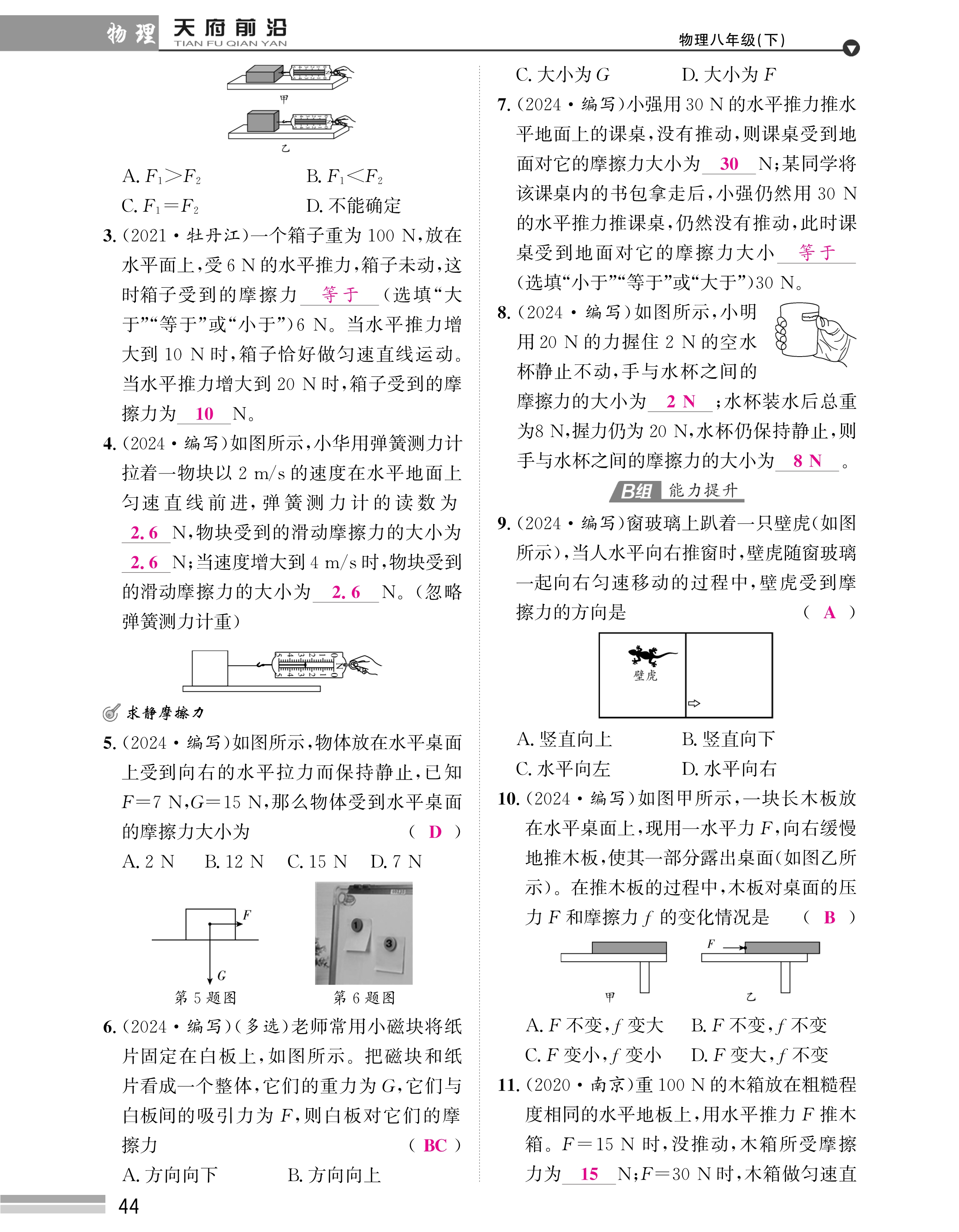 注:目前有些书本章节名称可能整理的还不是很完善,但都是按照顺序排列的,请同学们按照顺序仔细查找。练习册 2024年天府前沿八年级物理下册教科版课时同步培优训练 答案主要是用来给同学们做完题方便对答案用的,请勿直接抄袭。