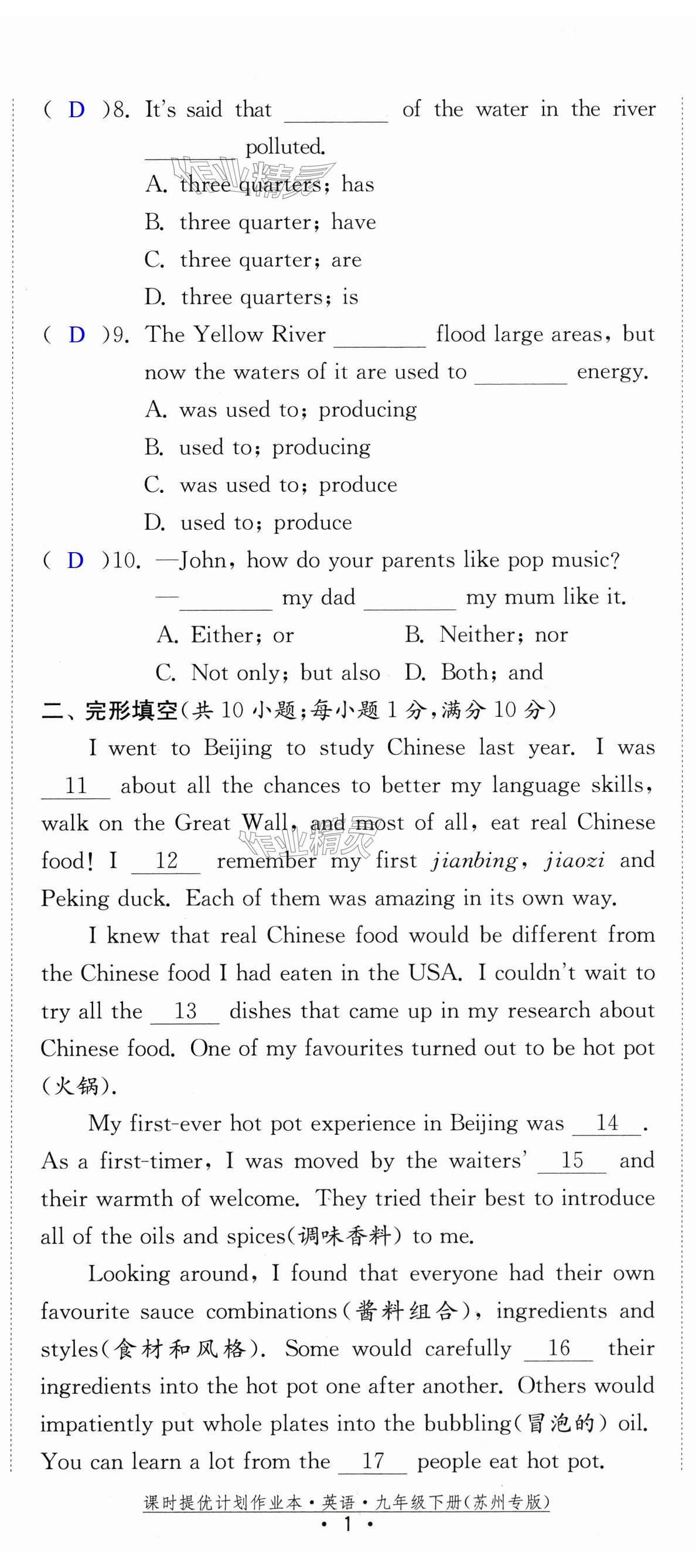 注:目前有些书本章节名称可能整理的还不是很完善,但都是按照顺序排列的,请同学们按照顺序仔细查找。练习册 2024年课时提优计划作业本九年级英语下册译林版苏州专版 答案主要是用来给同学们做完题方便对答案用的,请勿直接抄袭。