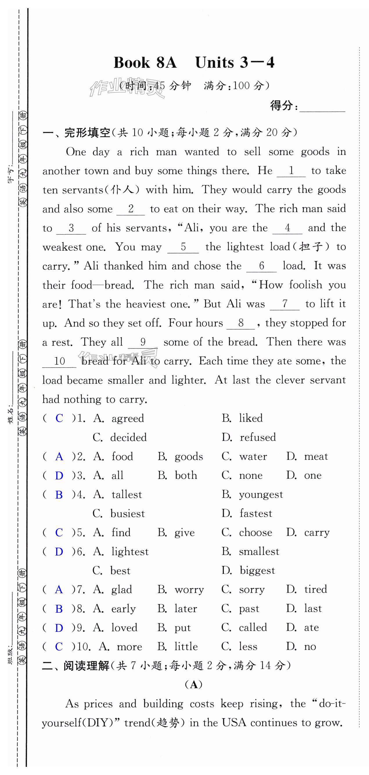 注:目前有些书本章节名称可能整理的还不是很完善,但都是按照顺序排列的,请同学们按照顺序仔细查找。练习册 2024年课时提优计划作业本九年级英语下册译林版苏州专版 答案主要是用来给同学们做完题方便对答案用的,请勿直接抄袭。