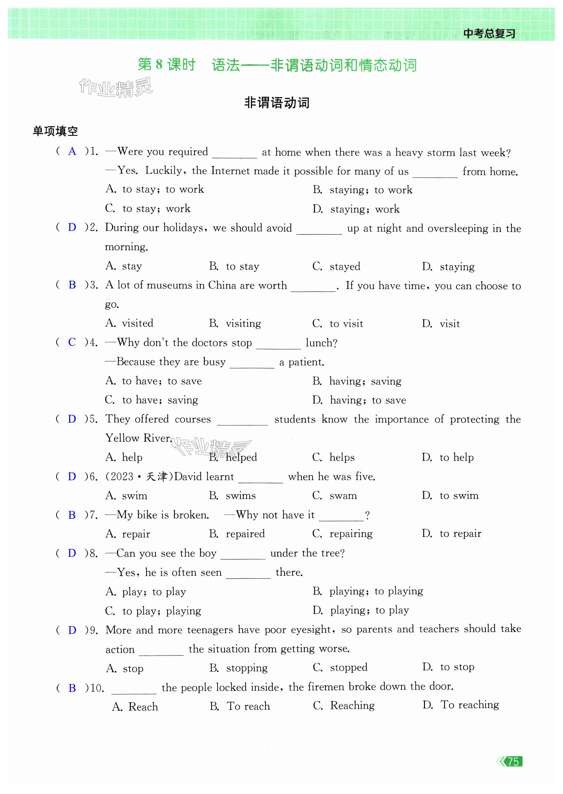 注:目前有些书本章节名称可能整理的还不是很完善,但都是按照顺序排列的,请同学们按照顺序仔细查找。练习册 2024年课时提优计划作业本九年级英语下册译林版苏州专版 答案主要是用来给同学们做完题方便对答案用的,请勿直接抄袭。