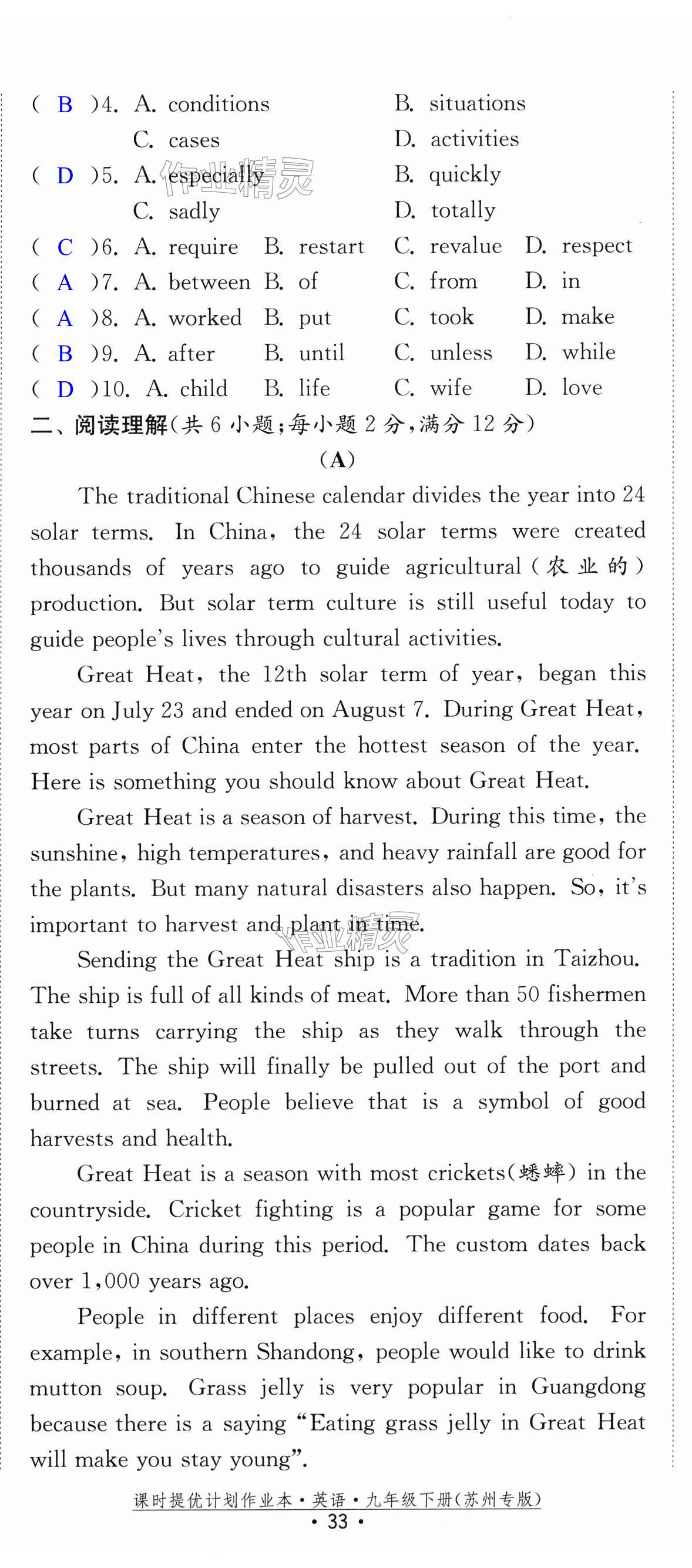 注:目前有些书本章节名称可能整理的还不是很完善,但都是按照顺序排列的,请同学们按照顺序仔细查找。练习册 2024年课时提优计划作业本九年级英语下册译林版苏州专版 答案主要是用来给同学们做完题方便对答案用的,请勿直接抄袭。