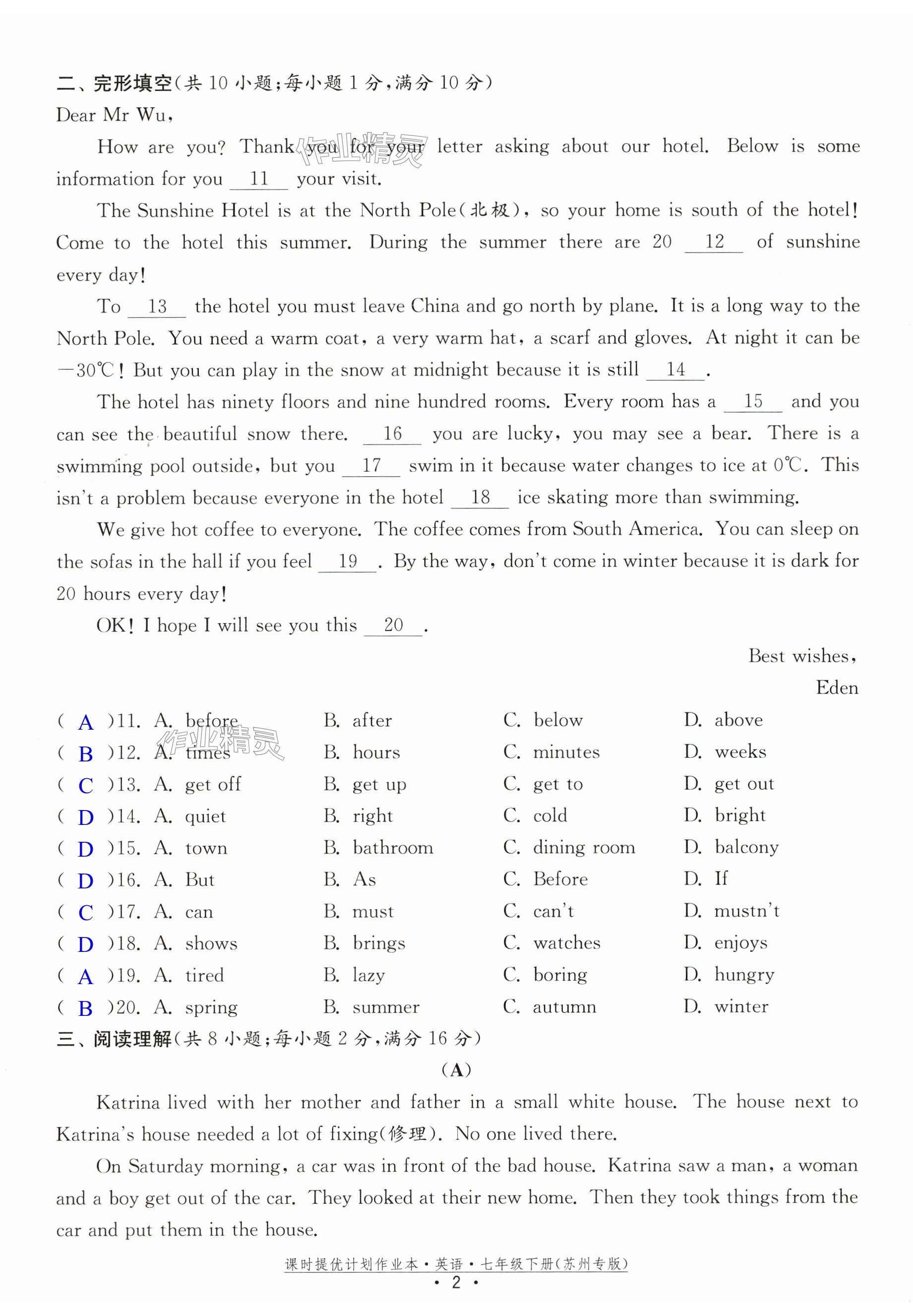 注:目前有些书本章节名称可能整理的还不是很完善,但都是按照顺序排列的,请同学们按照顺序仔细查找。练习册 2024年课时提优计划作业本七年级英语下册译林版苏州专版 答案主要是用来给同学们做完题方便对答案用的,请勿直接抄袭。