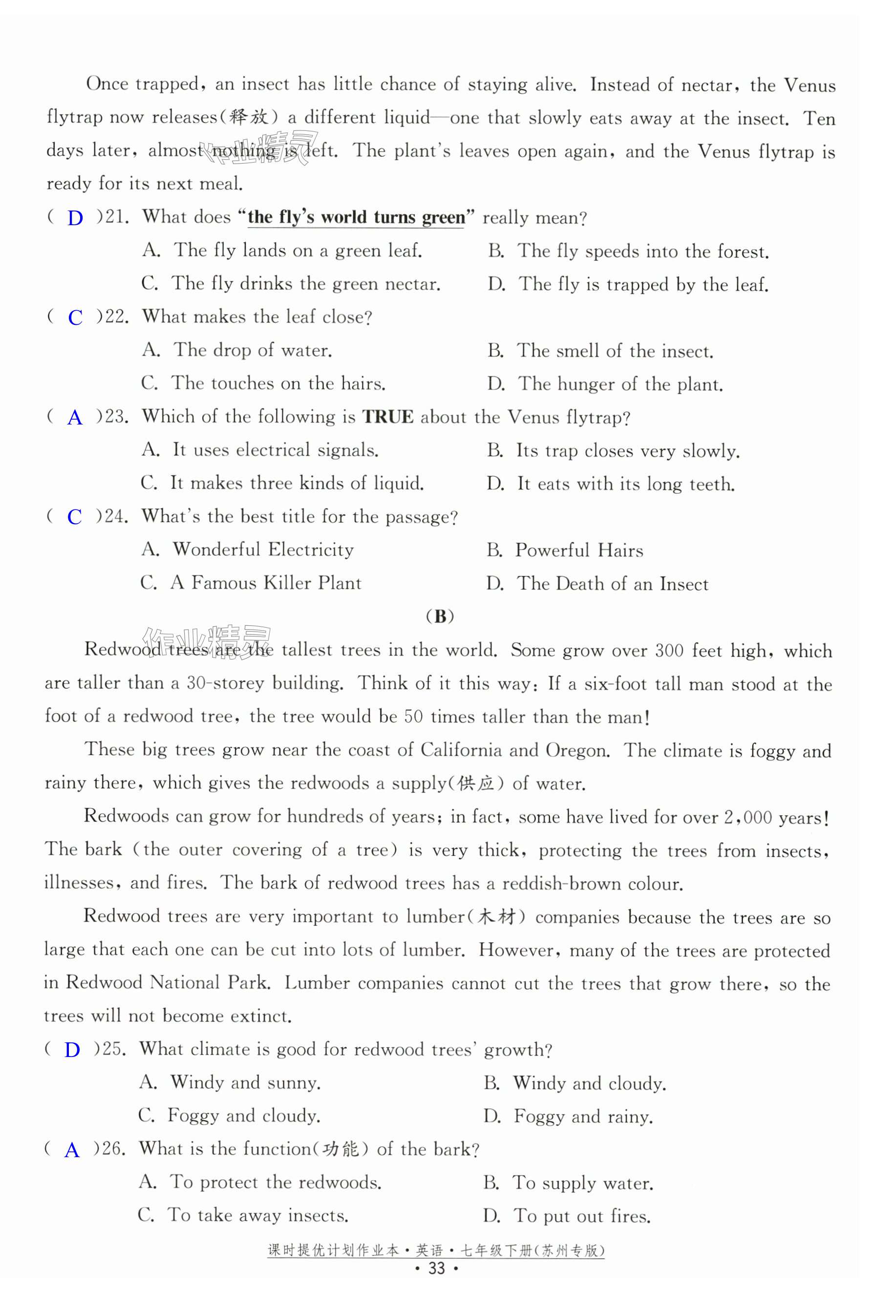 注:目前有些书本章节名称可能整理的还不是很完善,但都是按照顺序排列的,请同学们按照顺序仔细查找。练习册 2024年课时提优计划作业本七年级英语下册译林版苏州专版 答案主要是用来给同学们做完题方便对答案用的,请勿直接抄袭。