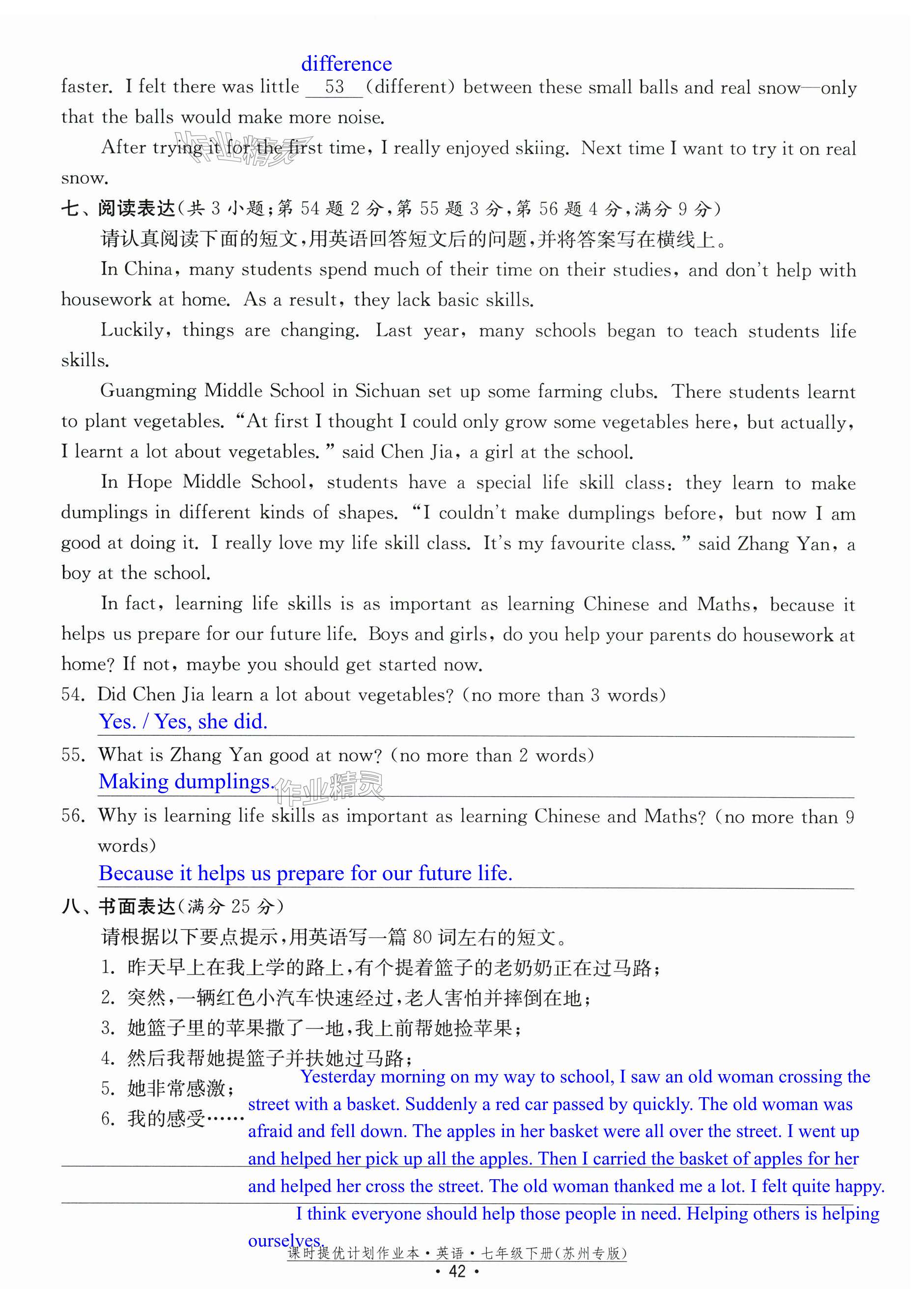 注:目前有些书本章节名称可能整理的还不是很完善,但都是按照顺序排列的,请同学们按照顺序仔细查找。练习册 2024年课时提优计划作业本七年级英语下册译林版苏州专版 答案主要是用来给同学们做完题方便对答案用的,请勿直接抄袭。