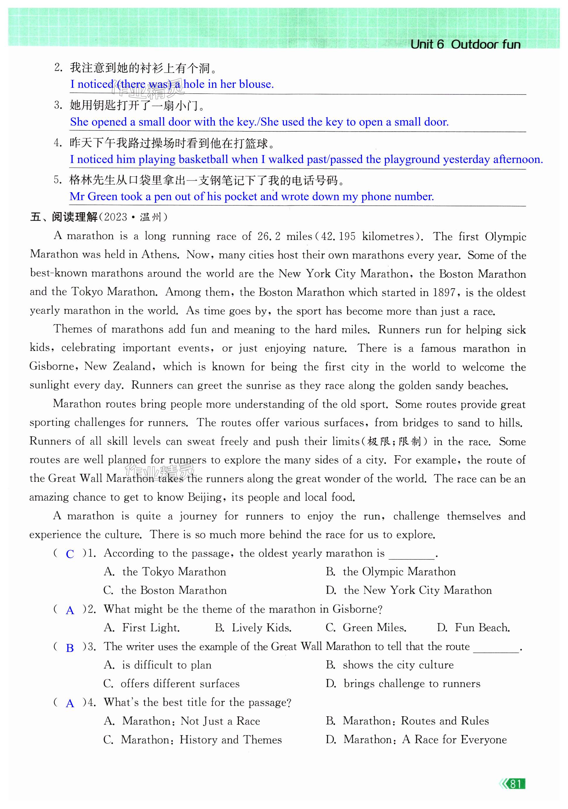注:目前有些书本章节名称可能整理的还不是很完善,但都是按照顺序排列的,请同学们按照顺序仔细查找。练习册 2024年课时提优计划作业本七年级英语下册译林版苏州专版 答案主要是用来给同学们做完题方便对答案用的,请勿直接抄袭。