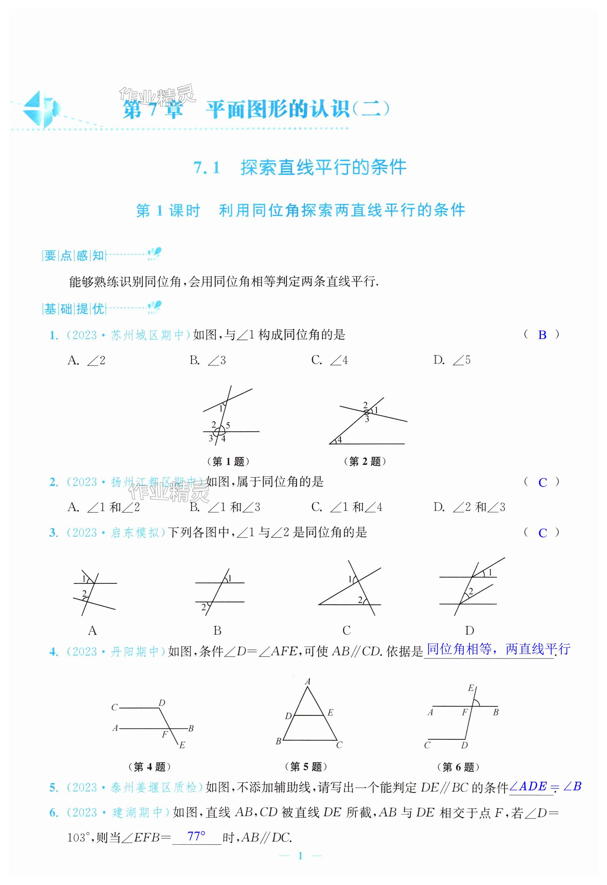 注:目前有些书本章节名称可能整理的还不是很完善,但都是按照顺序排列的,请同学们按照顺序仔细查找。练习册2024年南通小题课时作业本七年级数学下册苏科版答案主要是用来给同学们做完题方便对答案用的,请勿直接抄袭。