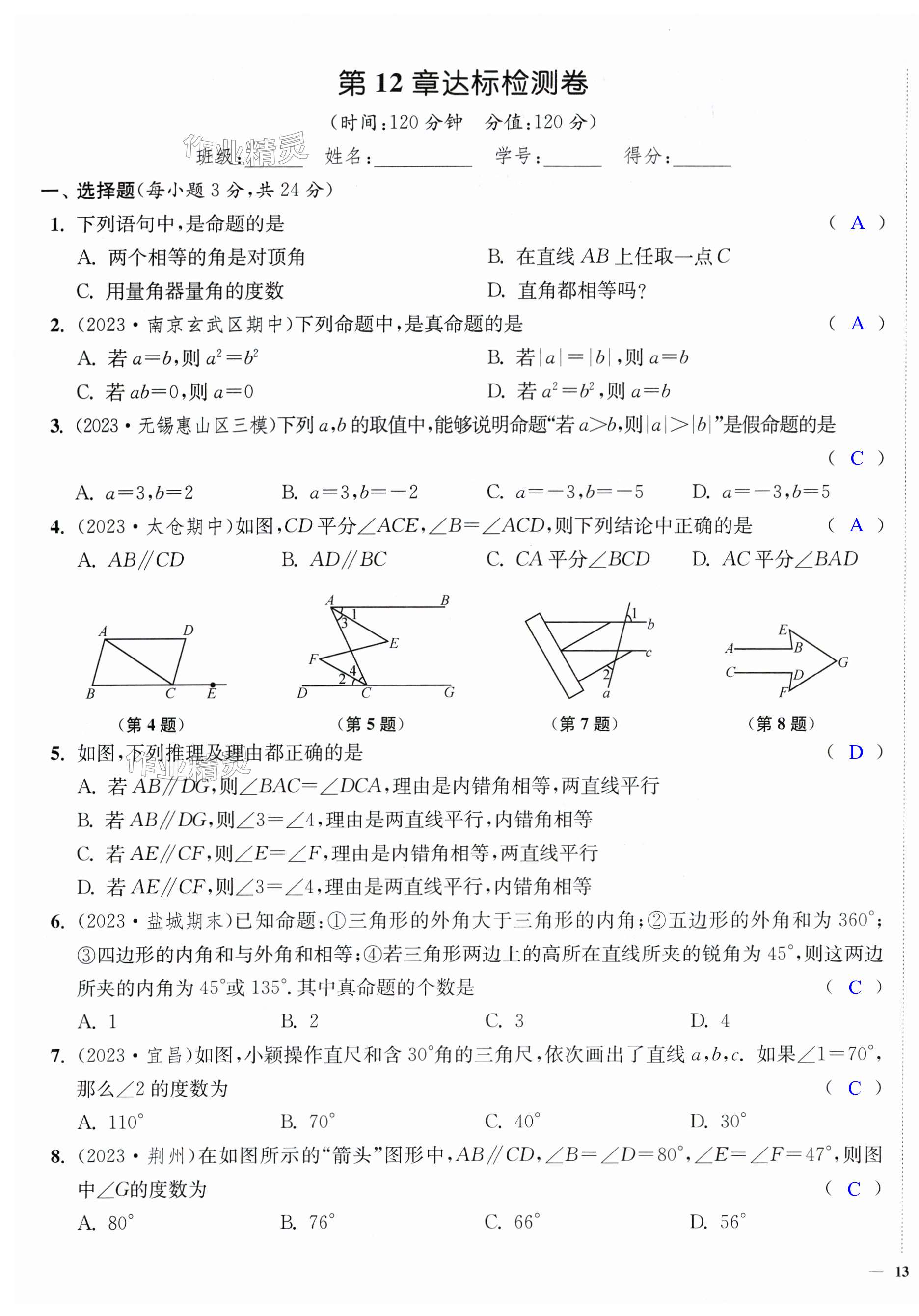 注:目前有些书本章节名称可能整理的还不是很完善,但都是按照顺序排列的,请同学们按照顺序仔细查找。练习册 2024年南通小题课时作业本七年级数学下册苏科版 答案主要是用来给同学们做完题方便对答案用的,请勿直接抄袭。