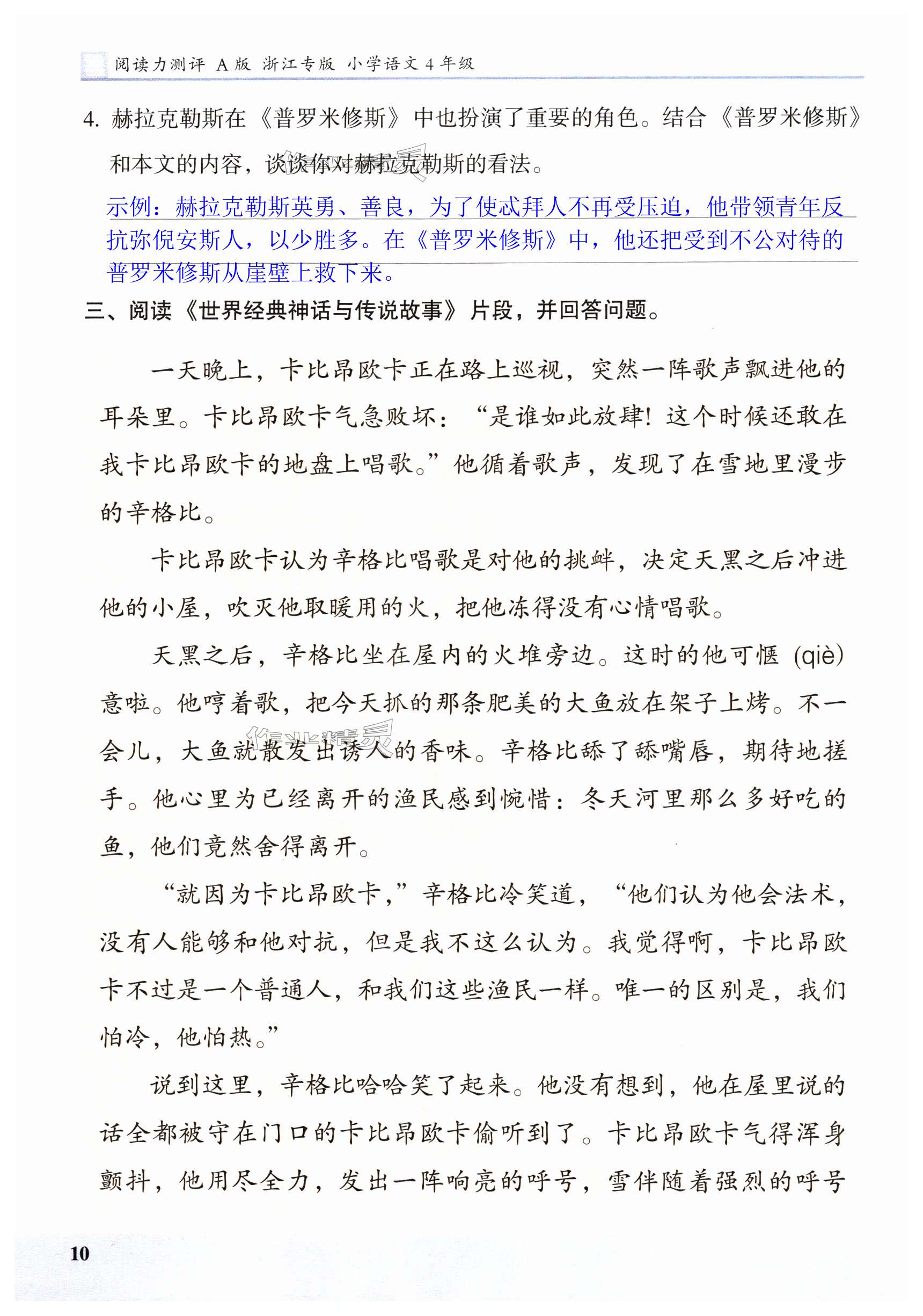 2024年木头马阅读力测评四年级语文下册人教版浙江专版