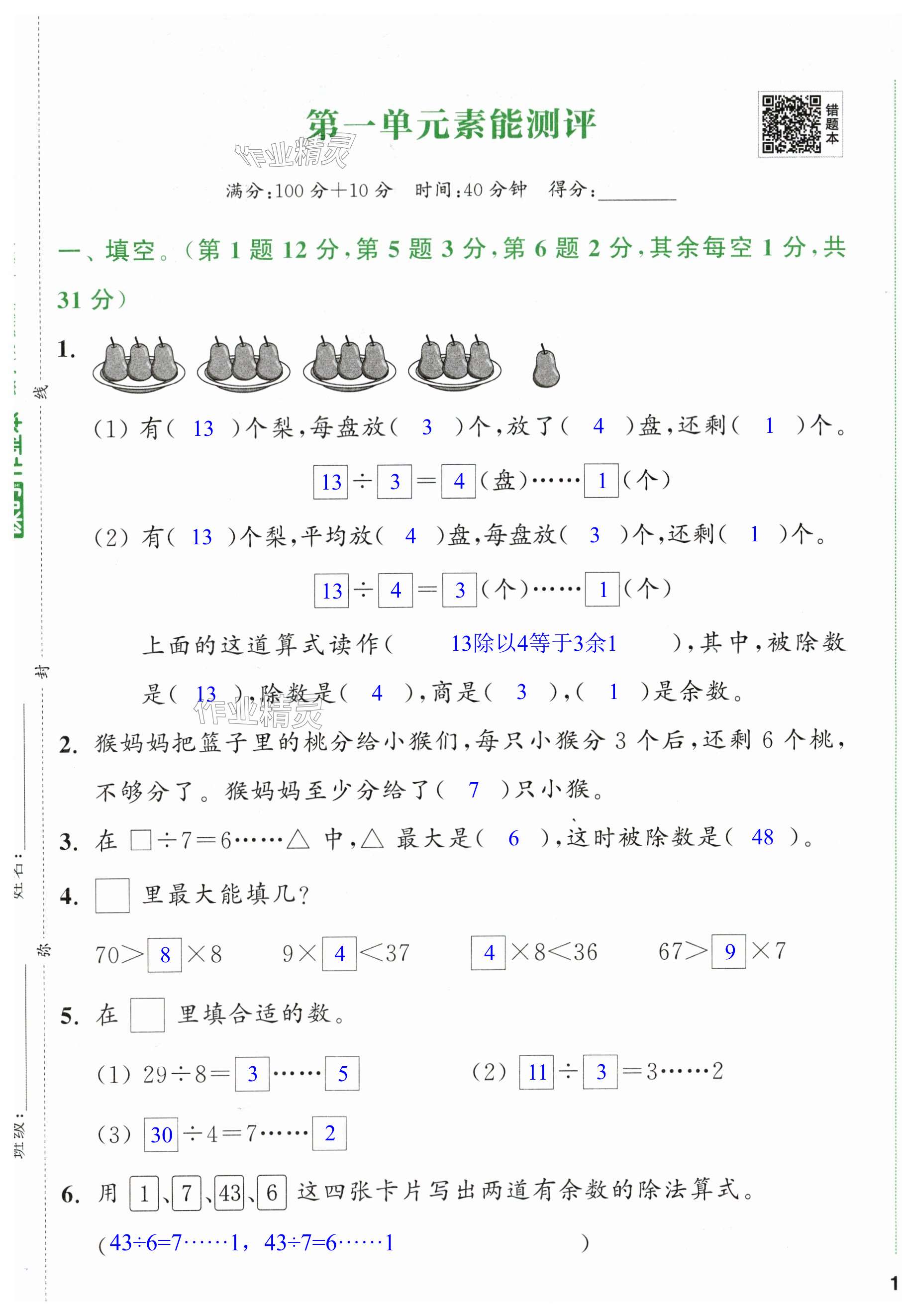 注:目前有些书本章节名称可能整理的还不是很完善,但都是按照顺序排列的,请同学们按照顺序仔细查找。练习册 2024年通城学典课时作业本二年级数学下册苏教版 答案主要是用来给同学们做完题方便对答案用的,请勿直接抄袭。
