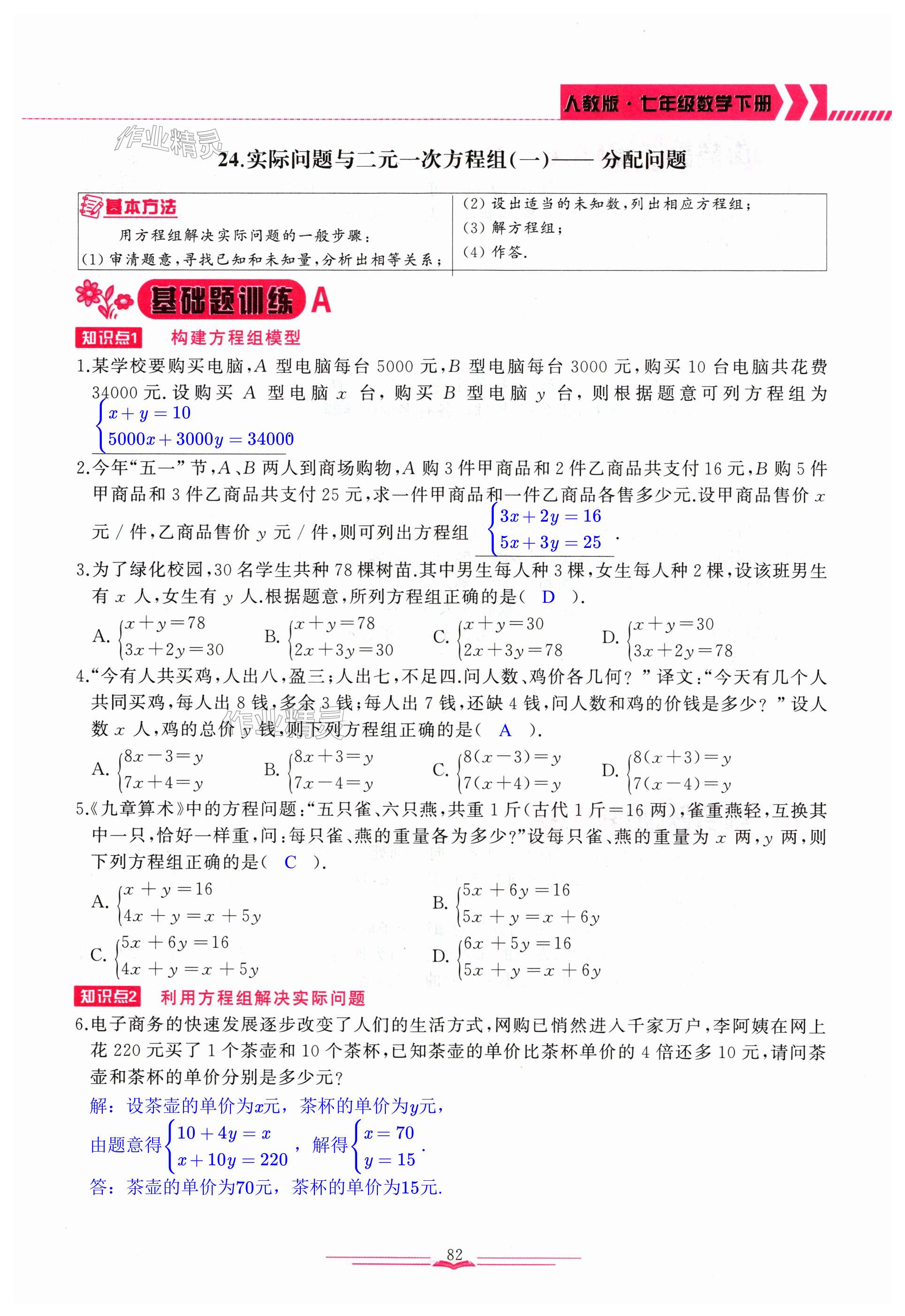 注:目前有些书本章节名称可能整理的还不是很完善,但都是按照顺序排列的,请同学们按照顺序仔细查找。练习册 2024年思维新观察七年级数学下册人教版 答案主要是用来给同学们做完题方便对答案用的,请勿直接抄袭。