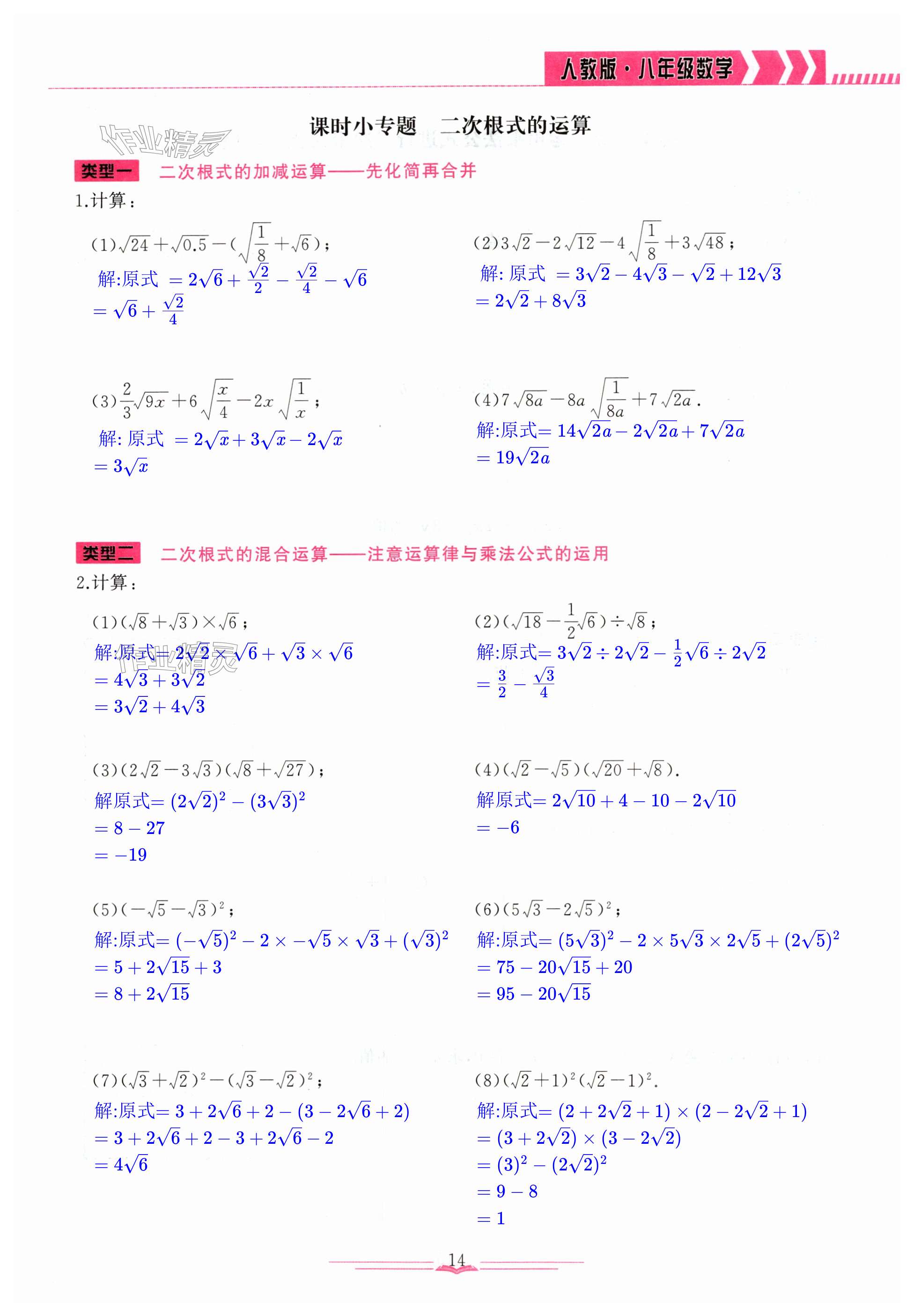 注:目前有些书本章节名称可能整理的还不是很完善,但都是按照顺序排列的,请同学们按照顺序仔细查找。练习册 2024年思维新观察八年级数学下册人教版 答案主要是用来给同学们做完题方便对答案用的,请勿直接抄袭。