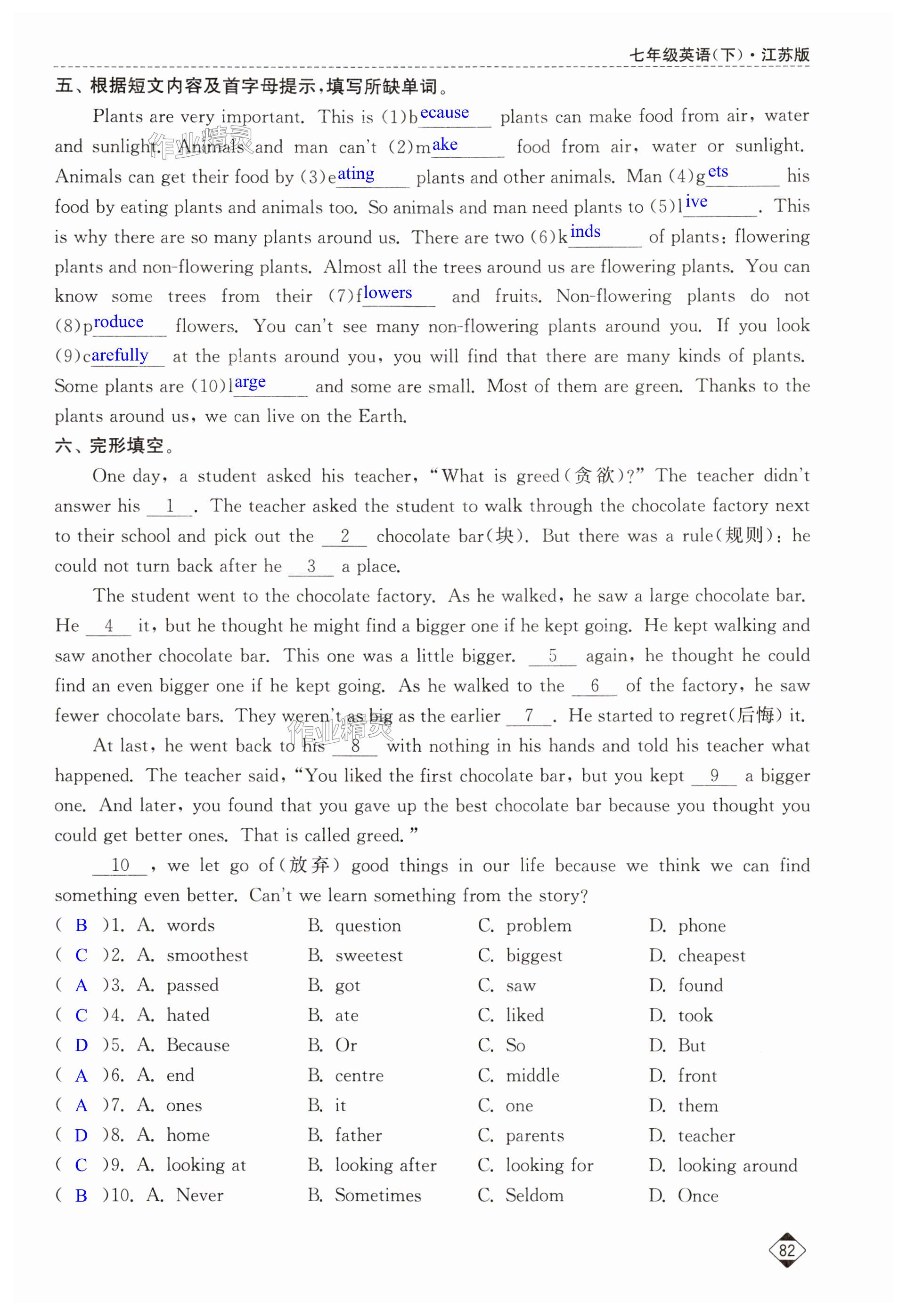 注:目前有些书本章节名称可能整理的还不是很完善,但都是按照顺序排列的,请同学们按照顺序仔细查找。练习册 2024年轻松作业本七年级英语下册译林版 答案主要是用来给同学们做完题方便对答案用的,请勿直接抄袭。