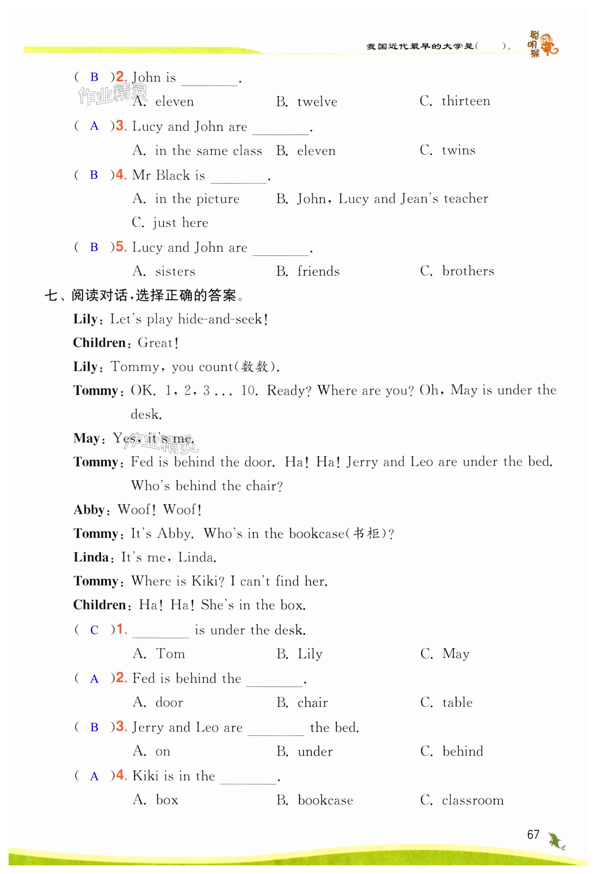 注:目前有些书本章节名称可能整理的还不是很完善,但都是按照顺序排列的,请同学们按照顺序仔细查找。练习册 2024年实验班提优训练三年级英语下册译林版 答案主要是用来给同学们做完题方便对答案用的,请勿直接抄袭。