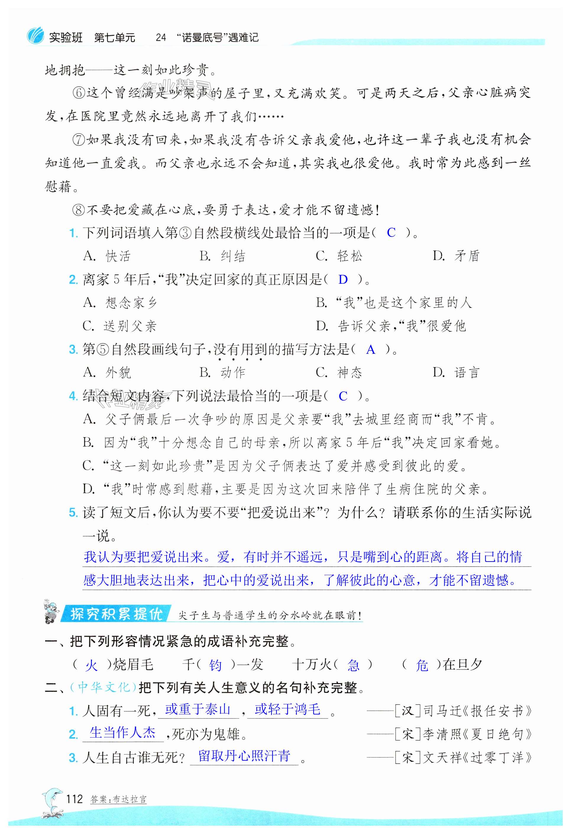 注:目前有些书本章节名称可能整理的还不是很完善,但都是按照顺序排列的,请同学们按照顺序仔细查找。练习册 2024年实验班提优训练四年级语文下册人教版 答案主要是用来给同学们做完题方便对答案用的,请勿直接抄袭。
