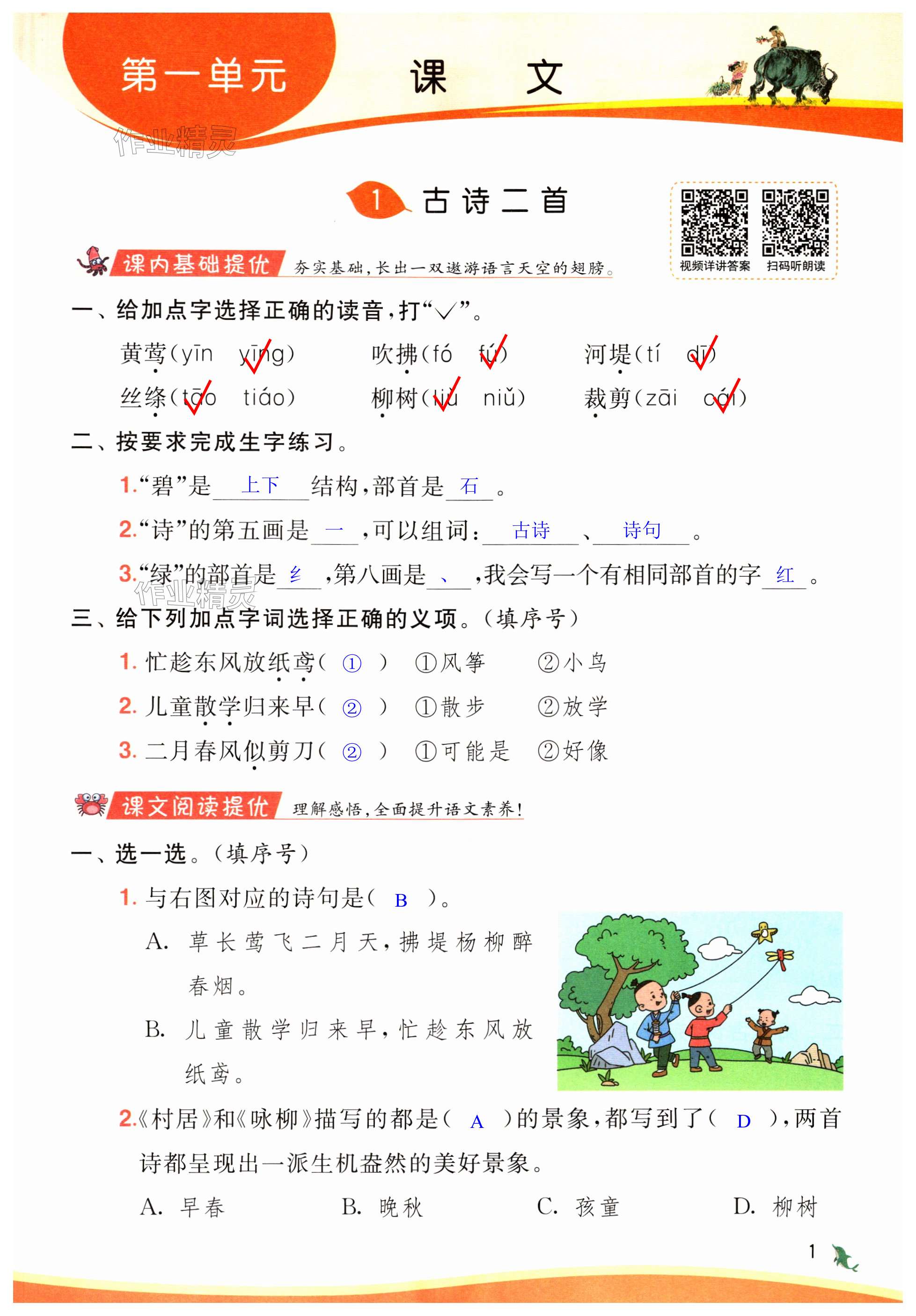 注:目前有些书本章节名称可能整理的还不是很完善,但都是按照顺序排列的,请同学们按照顺序仔细查找。练习册 2024年实验班提优训练二年级语文下册人教版 答案主要是用来给同学们做完题方便对答案用的,请勿直接抄袭。
