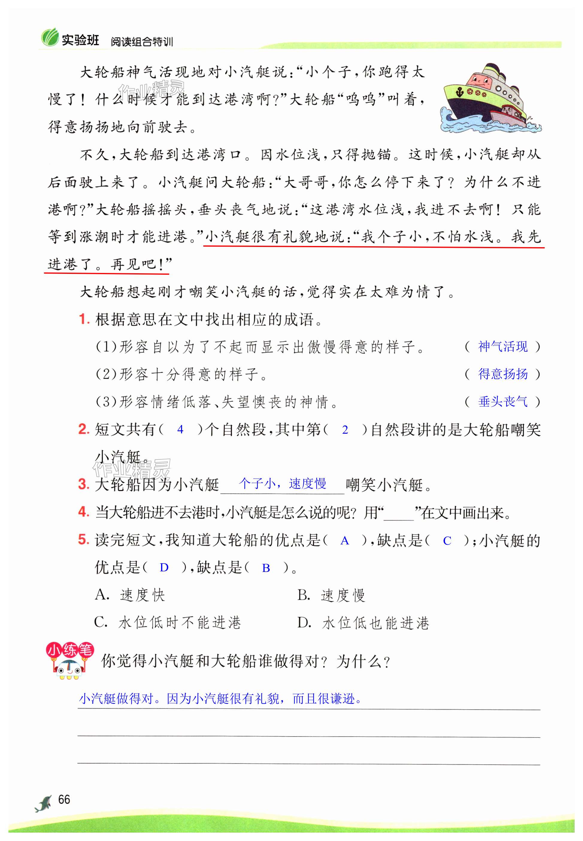 注:目前有些书本章节名称可能整理的还不是很完善,但都是按照顺序排列的,请同学们按照顺序仔细查找。练习册 2024年实验班提优训练二年级语文下册人教版 答案主要是用来给同学们做完题方便对答案用的,请勿直接抄袭。