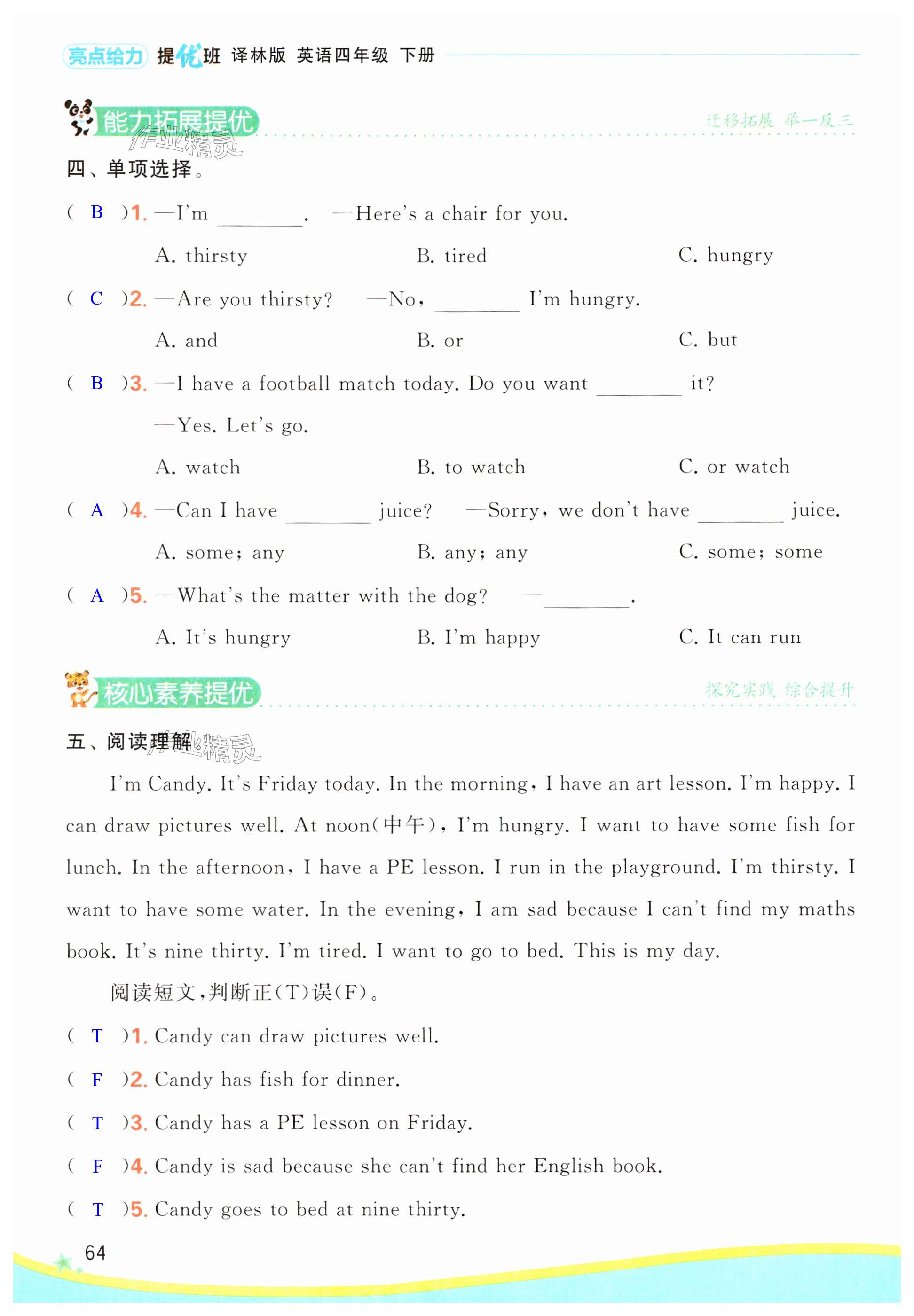 注:目前有些书本章节名称可能整理的还不是很完善,但都是按照顺序排列的,请同学们按照顺序仔细查找。练习册 2024年亮点给力提优班四年级英语下册译林版 答案主要是用来给同学们做完题方便对答案用的,请勿直接抄袭。