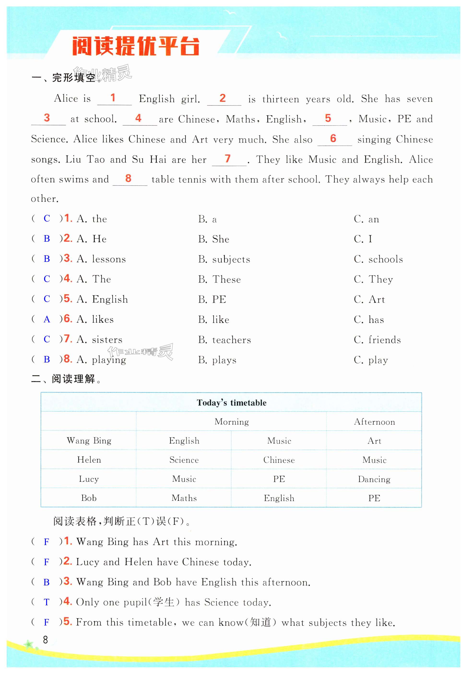 注:目前有些书本章节名称可能整理的还不是很完善,但都是按照顺序排列的,请同学们按照顺序仔细查找。练习册 2024年亮点给力提优班四年级英语下册译林版 答案主要是用来给同学们做完题方便对答案用的,请勿直接抄袭。