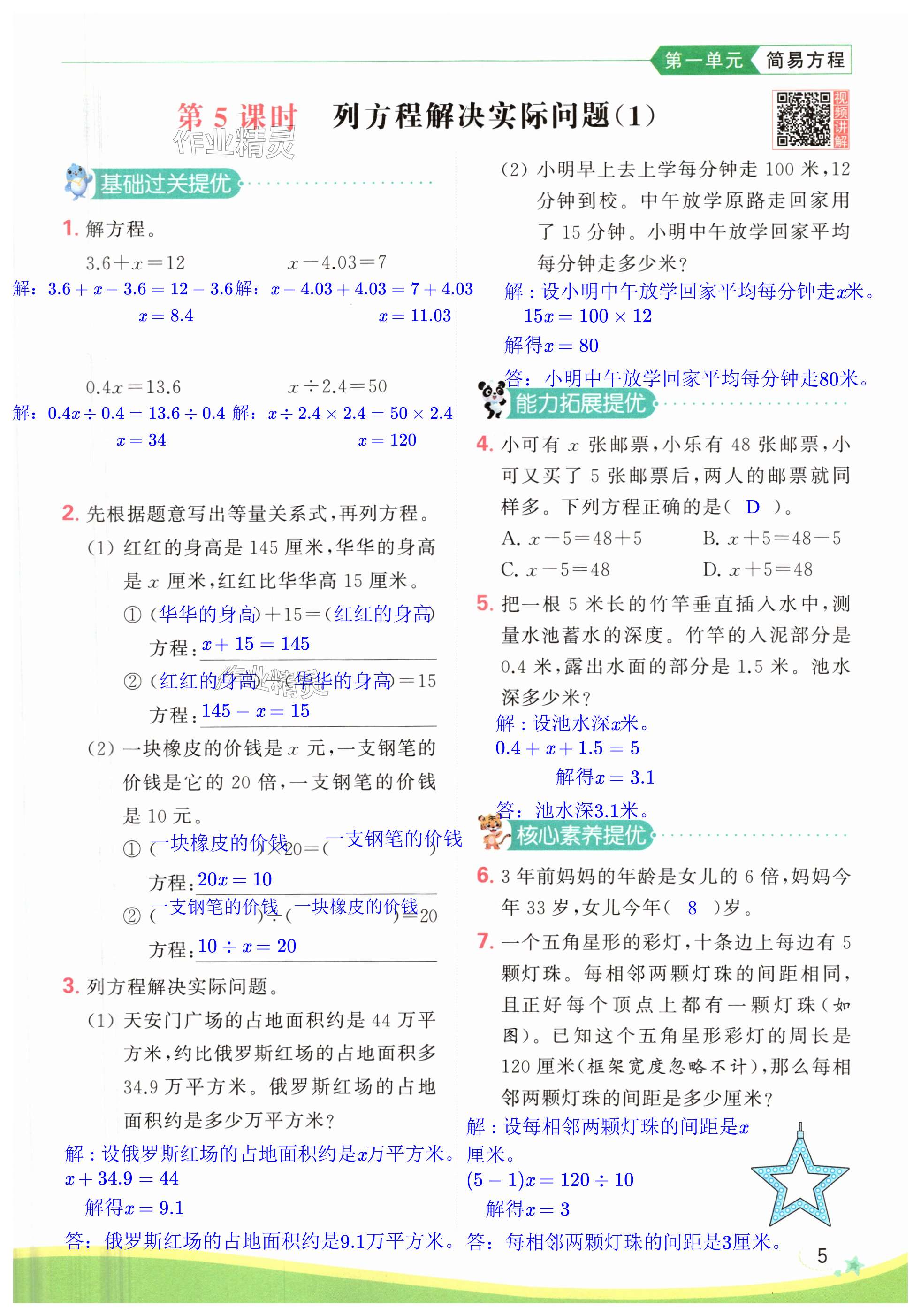 注:目前有些书本章节名称可能整理的还不是很完善,但都是按照顺序排列的,请同学们按照顺序仔细查找。练习册 2024年亮点给力提优班五年级数学下册苏教版 答案主要是用来给同学们做完题方便对答案用的,请勿直接抄袭。