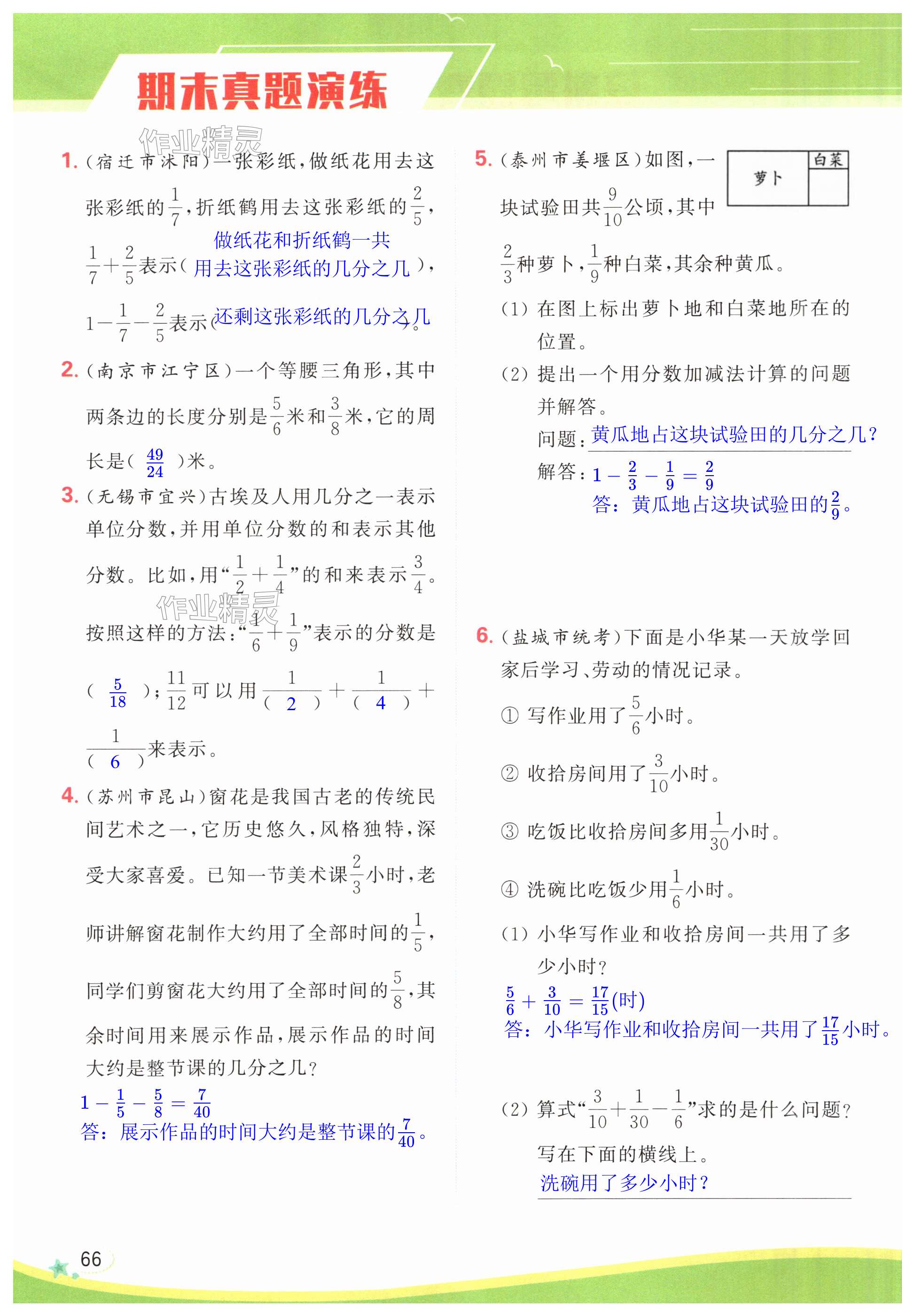 注:目前有些书本章节名称可能整理的还不是很完善,但都是按照顺序排列的,请同学们按照顺序仔细查找。练习册 2024年亮点给力提优班五年级数学下册苏教版 答案主要是用来给同学们做完题方便对答案用的,请勿直接抄袭。