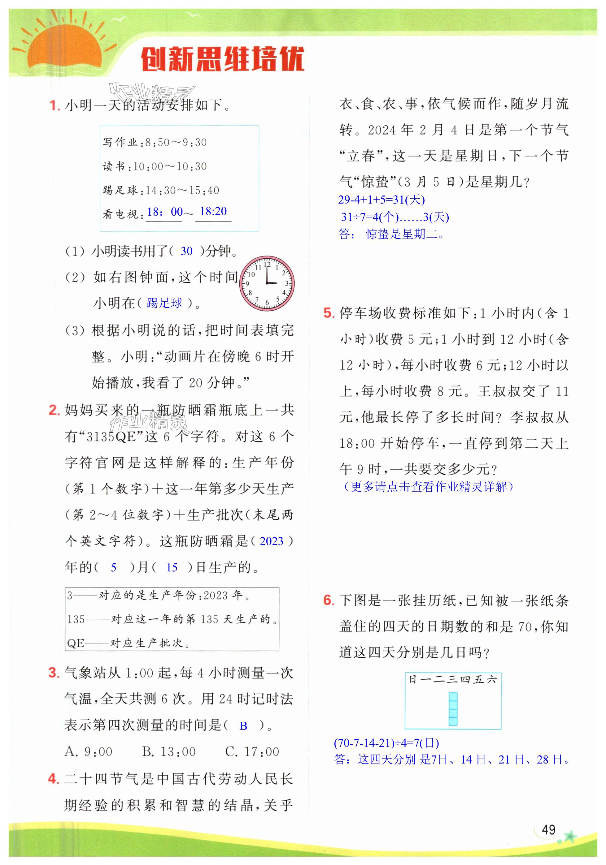 注:目前有些书本章节名称可能整理的还不是很完善,但都是按照顺序排列的,请同学们按照顺序仔细查找。练习册 2024年亮点给力提优班三年级数学下册苏教版 答案主要是用来给同学们做完题方便对答案用的,请勿直接抄袭。