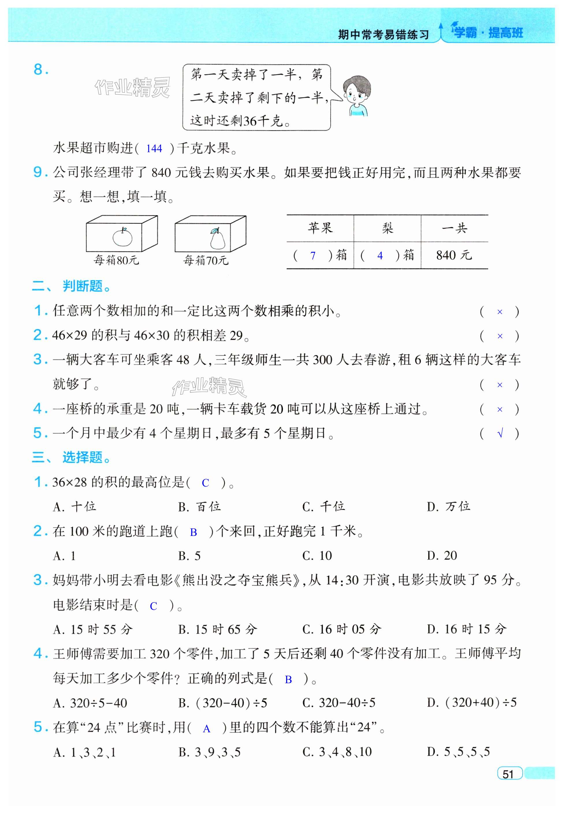 注:目前有些书本章节名称可能整理的还不是很完善,但都是按照顺序排列的,请同学们按照顺序仔细查找。练习册 2024年经纶学典提高班三年级数学下册苏教版 答案主要是用来给同学们做完题方便对答案用的,请勿直接抄袭。