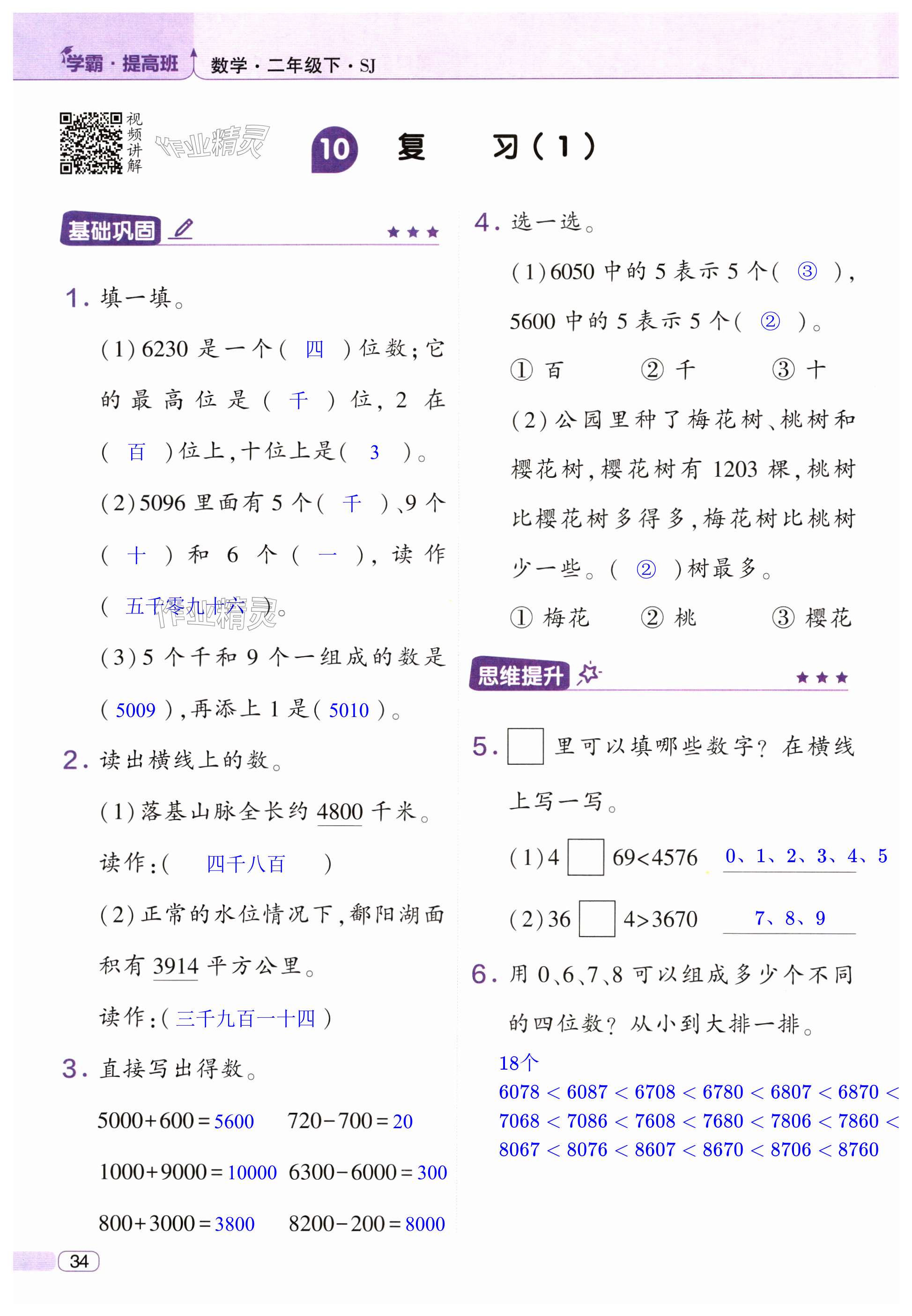 注:目前有些书本章节名称可能整理的还不是很完善,但都是按照顺序排列的,请同学们按照顺序仔细查找。练习册 2024年经纶学典提高班二年级数学下册苏教版 答案主要是用来给同学们做完题方便对答案用的,请勿直接抄袭。