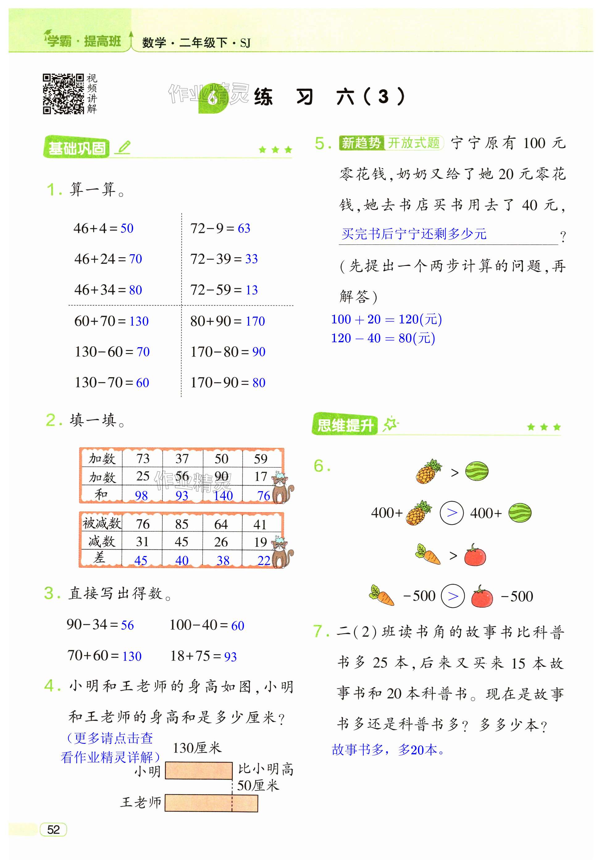 注:目前有些书本章节名称可能整理的还不是很完善,但都是按照顺序排列的,请同学们按照顺序仔细查找。练习册 2024年经纶学典提高班二年级数学下册苏教版 答案主要是用来给同学们做完题方便对答案用的,请勿直接抄袭。