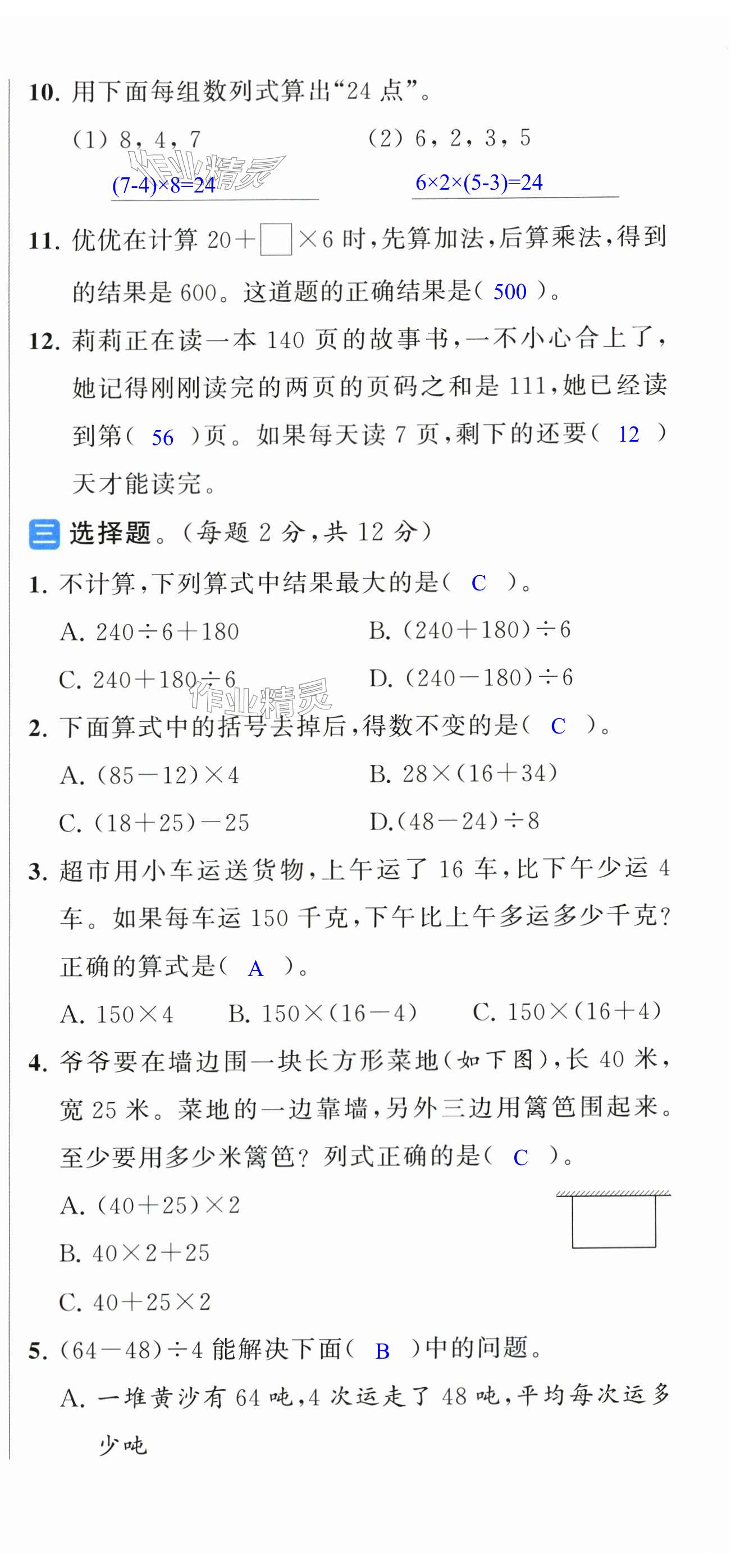 注:目前有些书本章节名称可能整理的还不是很完善,但都是按照顺序排列的,请同学们按照顺序仔细查找。练习册 2024年同步跟踪全程检测三年级数学下册苏教版 答案主要是用来给同学们做完题方便对答案用的,请勿直接抄袭。