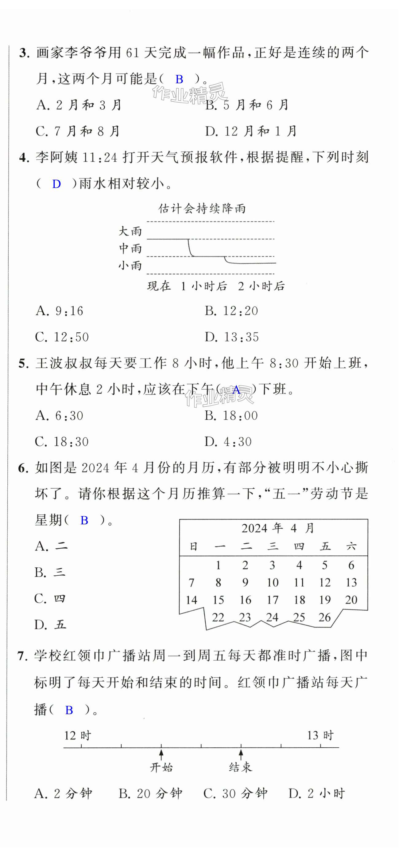 注:目前有些书本章节名称可能整理的还不是很完善,但都是按照顺序排列的,请同学们按照顺序仔细查找。练习册 2024年同步跟踪全程检测三年级数学下册苏教版 答案主要是用来给同学们做完题方便对答案用的,请勿直接抄袭。