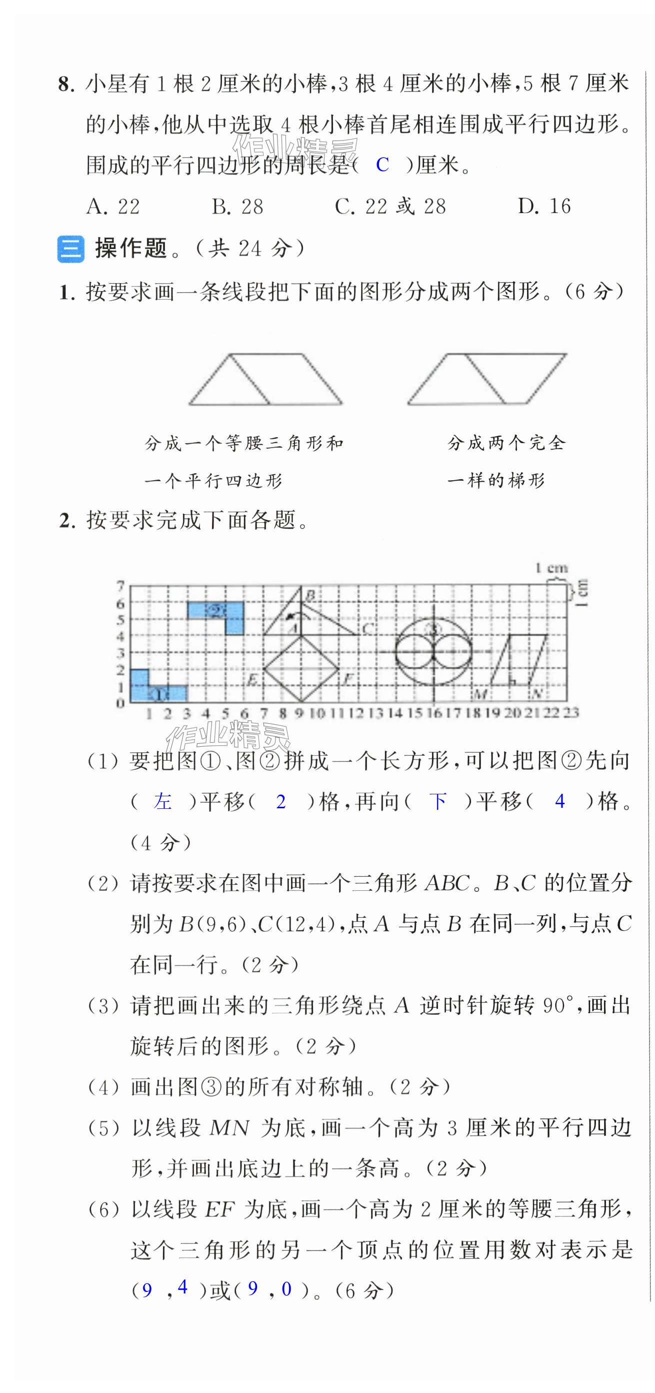 注:目前有些书本章节名称可能整理的还不是很完善,但都是按照顺序排列的,请同学们按照顺序仔细查找。练习册 2024年同步跟踪全程检测四年级数学下册苏教版 答案主要是用来给同学们做完题方便对答案用的,请勿直接抄袭。