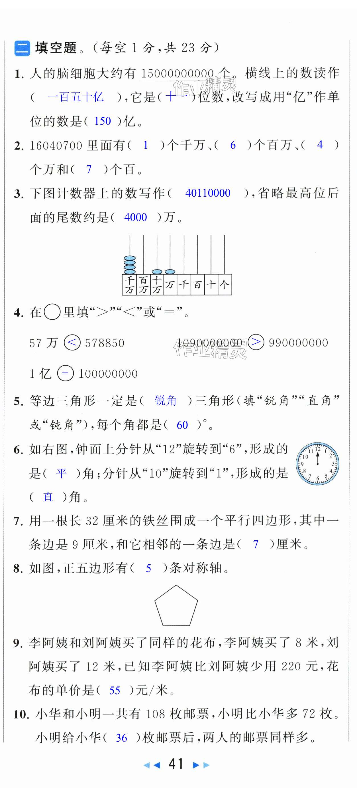 注:目前有些书本章节名称可能整理的还不是很完善,但都是按照顺序排列的,请同学们按照顺序仔细查找。练习册 2024年同步跟踪全程检测四年级数学下册苏教版 答案主要是用来给同学们做完题方便对答案用的,请勿直接抄袭。