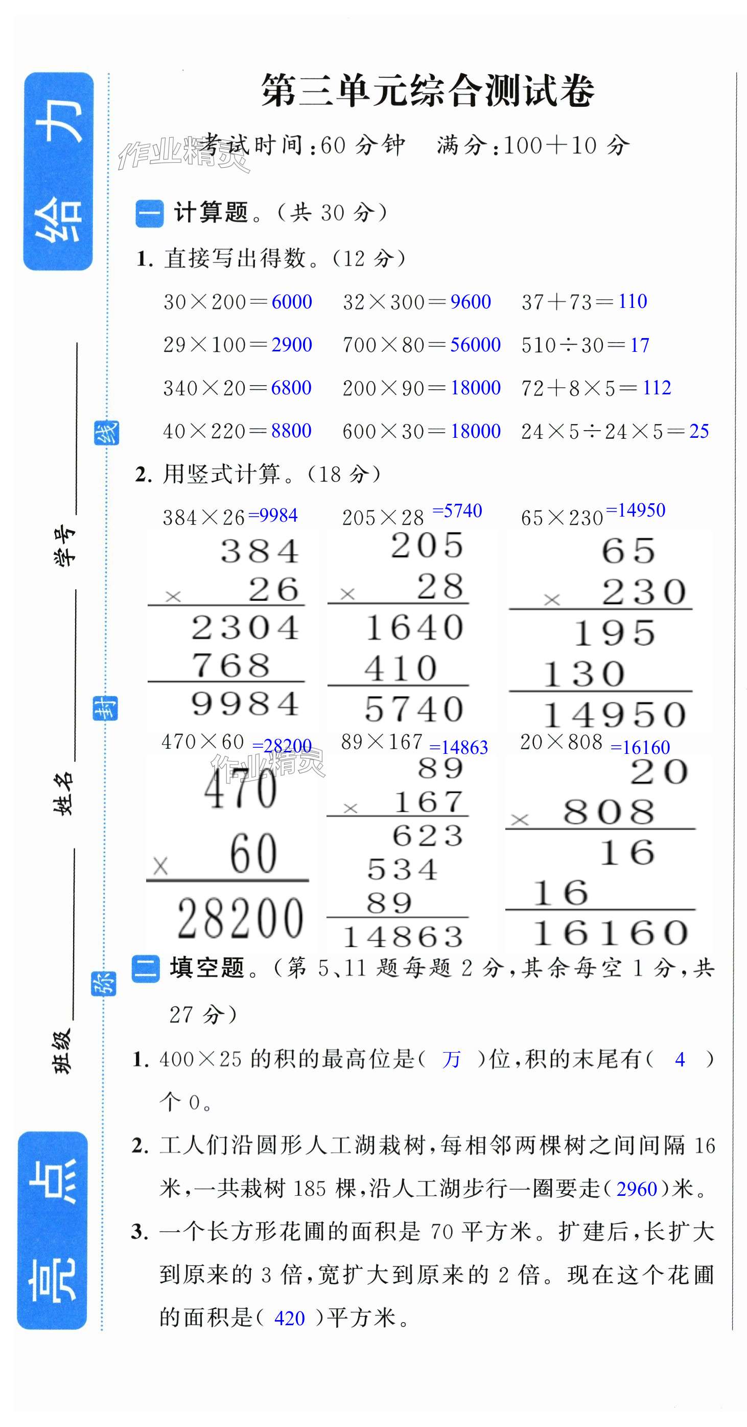 注:目前有些书本章节名称可能整理的还不是很完善,但都是按照顺序排列的,请同学们按照顺序仔细查找。练习册 2024年同步跟踪全程检测四年级数学下册苏教版 答案主要是用来给同学们做完题方便对答案用的,请勿直接抄袭。