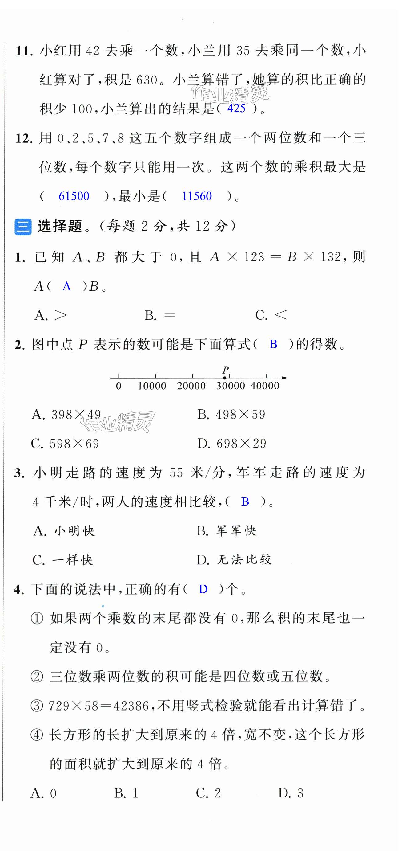 注:目前有些书本章节名称可能整理的还不是很完善,但都是按照顺序排列的,请同学们按照顺序仔细查找。练习册 2024年同步跟踪全程检测四年级数学下册苏教版 答案主要是用来给同学们做完题方便对答案用的,请勿直接抄袭。
