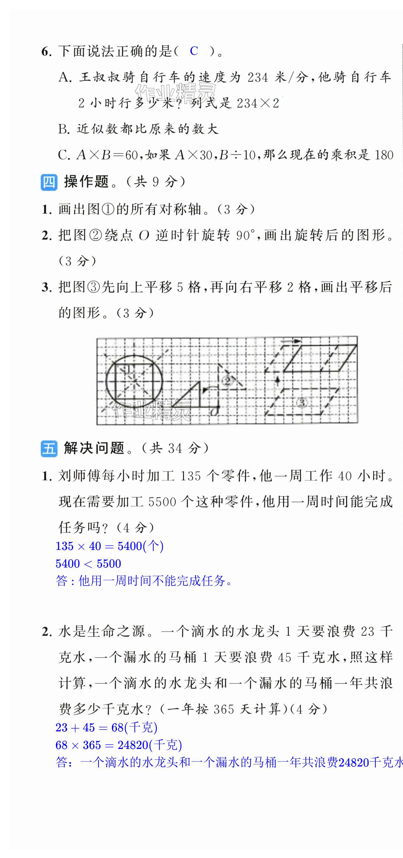 注:目前有些书本章节名称可能整理的还不是很完善,但都是按照顺序排列的,请同学们按照顺序仔细查找。练习册 2024年同步跟踪全程检测四年级数学下册苏教版 答案主要是用来给同学们做完题方便对答案用的,请勿直接抄袭。