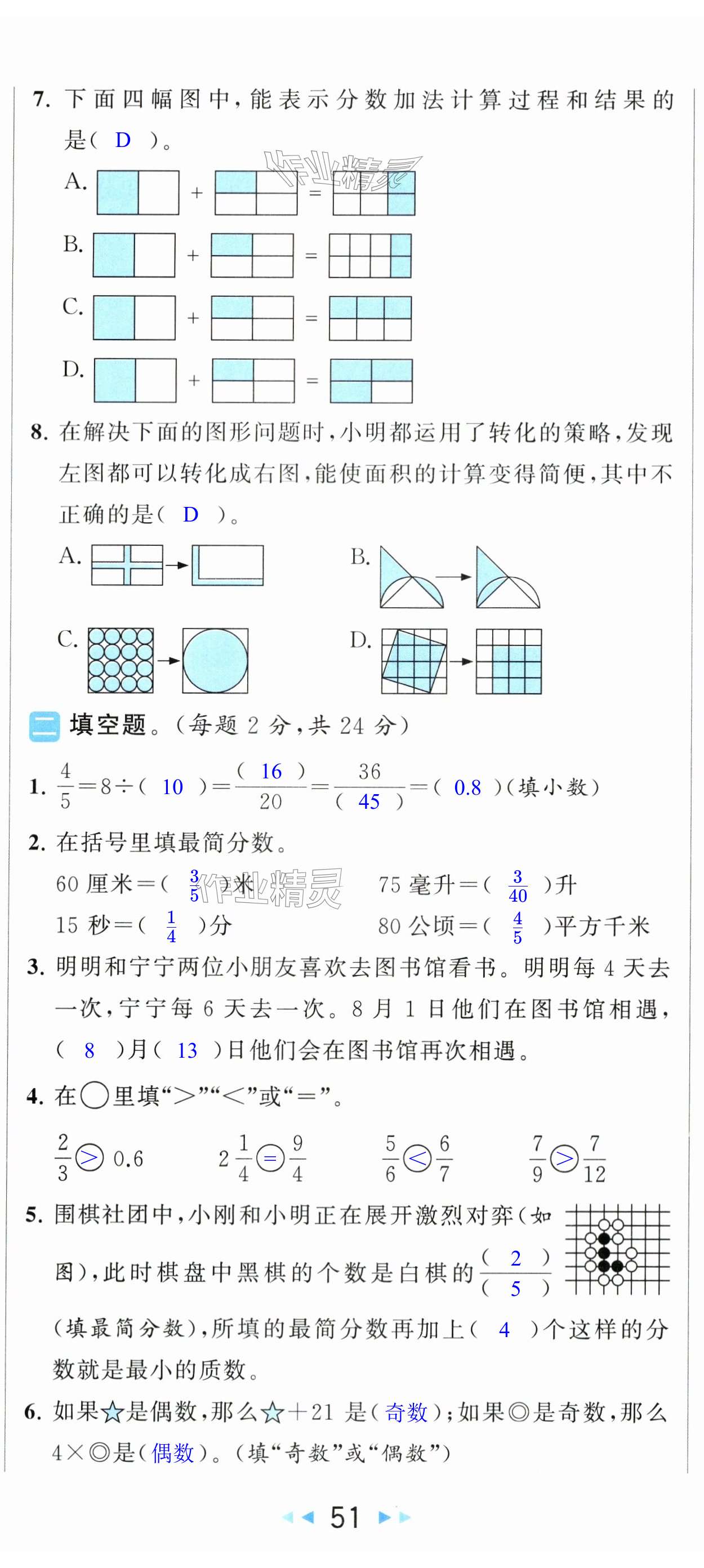 注:目前有些书本章节名称可能整理的还不是很完善,但都是按照顺序排列的,请同学们按照顺序仔细查找。练习册 2024年同步跟踪全程检测五年级数学下册苏教版 答案主要是用来给同学们做完题方便对答案用的,请勿直接抄袭。