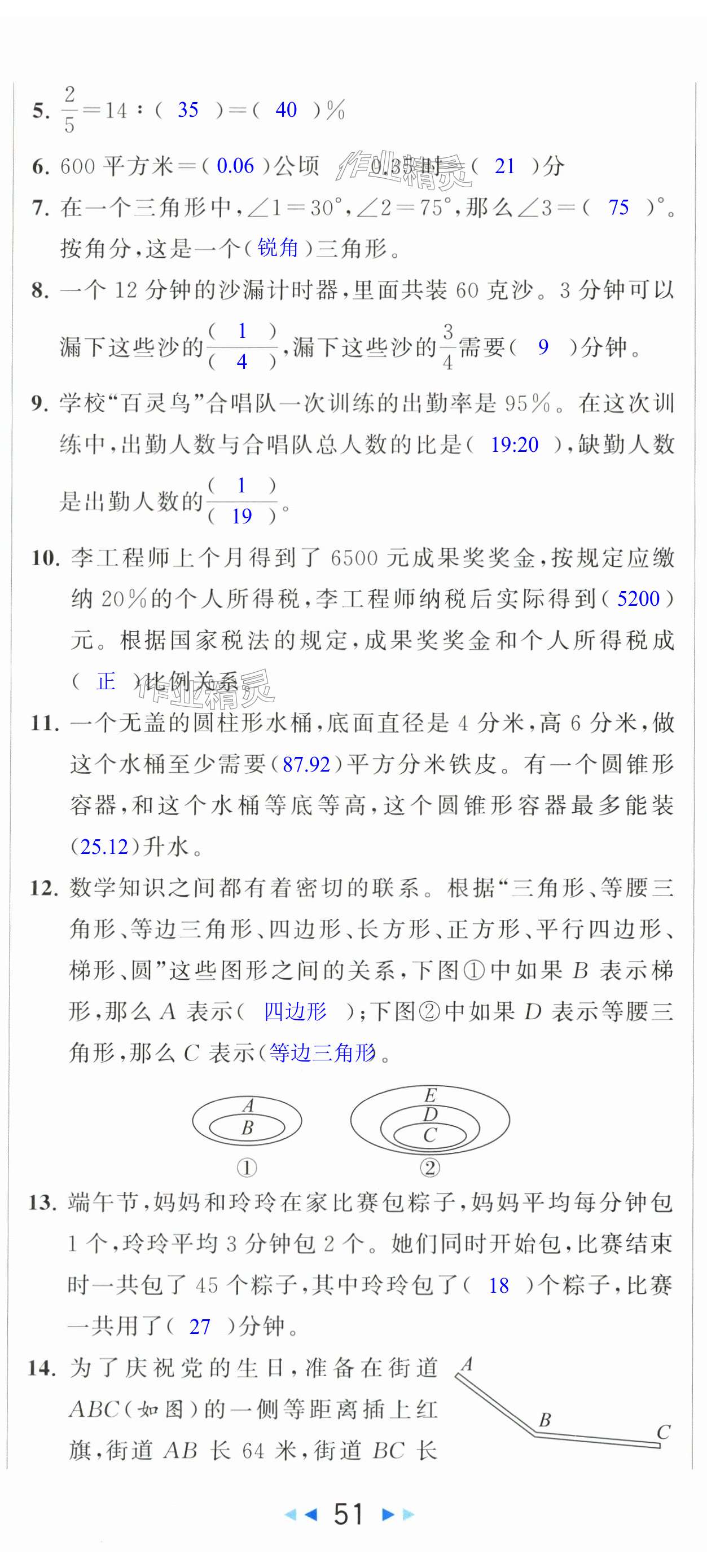 注:目前有些书本章节名称可能整理的还不是很完善,但都是按照顺序排列的,请同学们按照顺序仔细查找。练习册 2024年同步跟踪全程检测六年级数学下册苏教版 答案主要是用来给同学们做完题方便对答案用的,请勿直接抄袭。