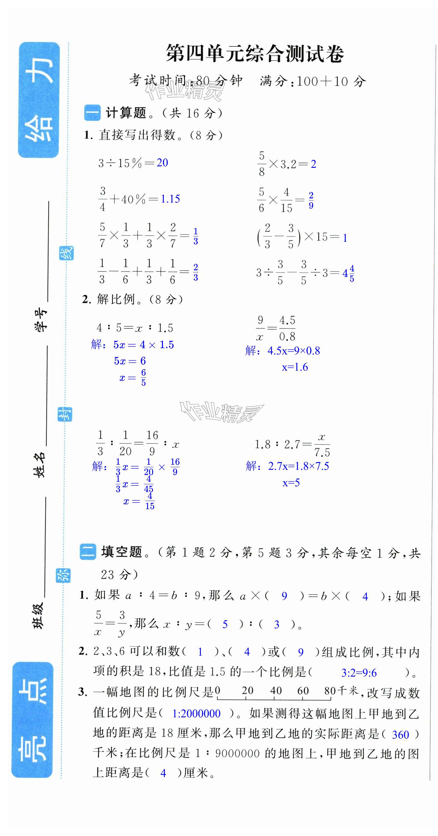 注:目前有些书本章节名称可能整理的还不是很完善,但都是按照顺序排列的,请同学们按照顺序仔细查找。练习册 2024年同步跟踪全程检测六年级数学下册苏教版 答案主要是用来给同学们做完题方便对答案用的,请勿直接抄袭。