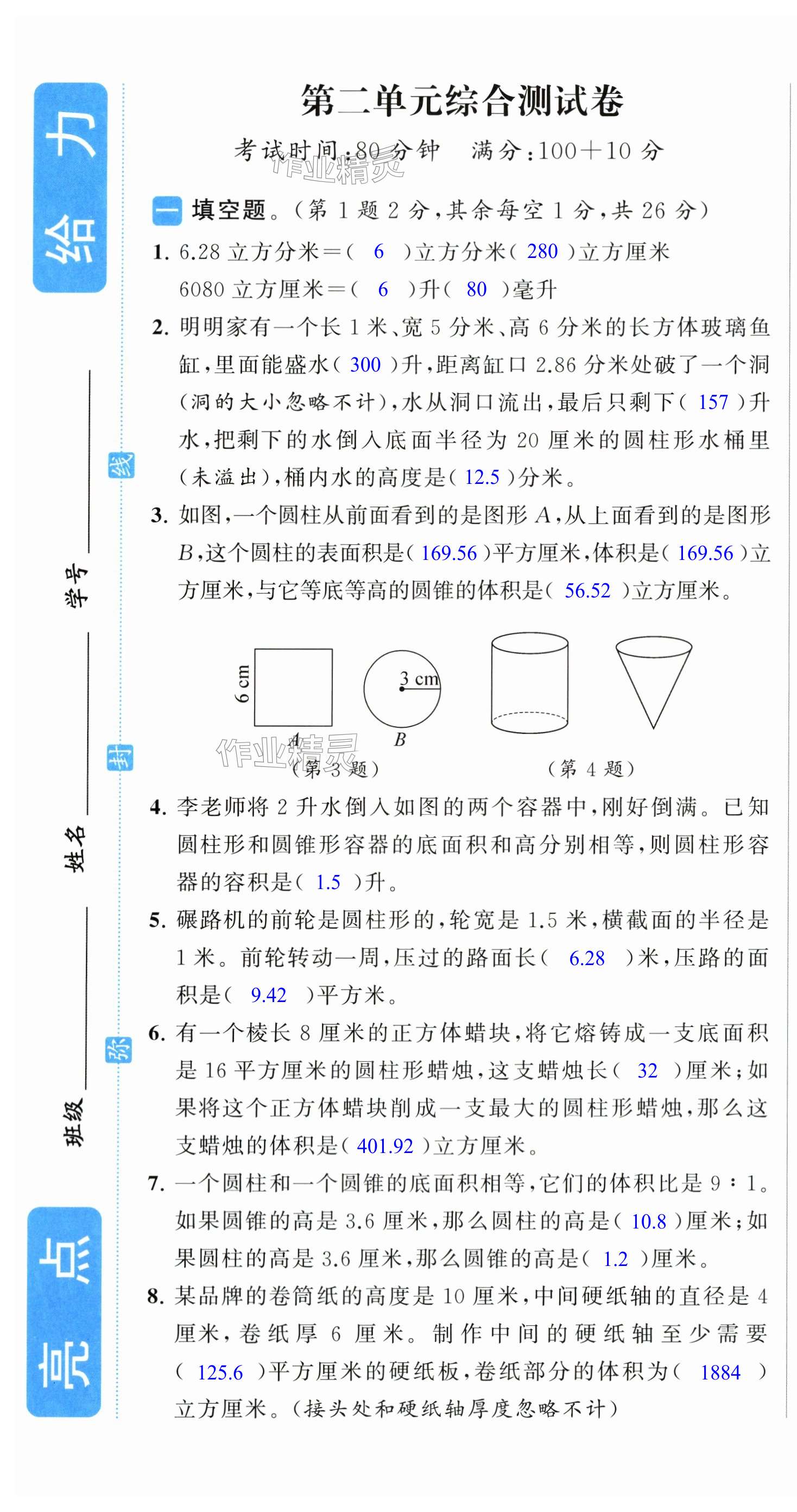 注:目前有些书本章节名称可能整理的还不是很完善,但都是按照顺序排列的,请同学们按照顺序仔细查找。练习册 2024年同步跟踪全程检测六年级数学下册苏教版 答案主要是用来给同学们做完题方便对答案用的,请勿直接抄袭。