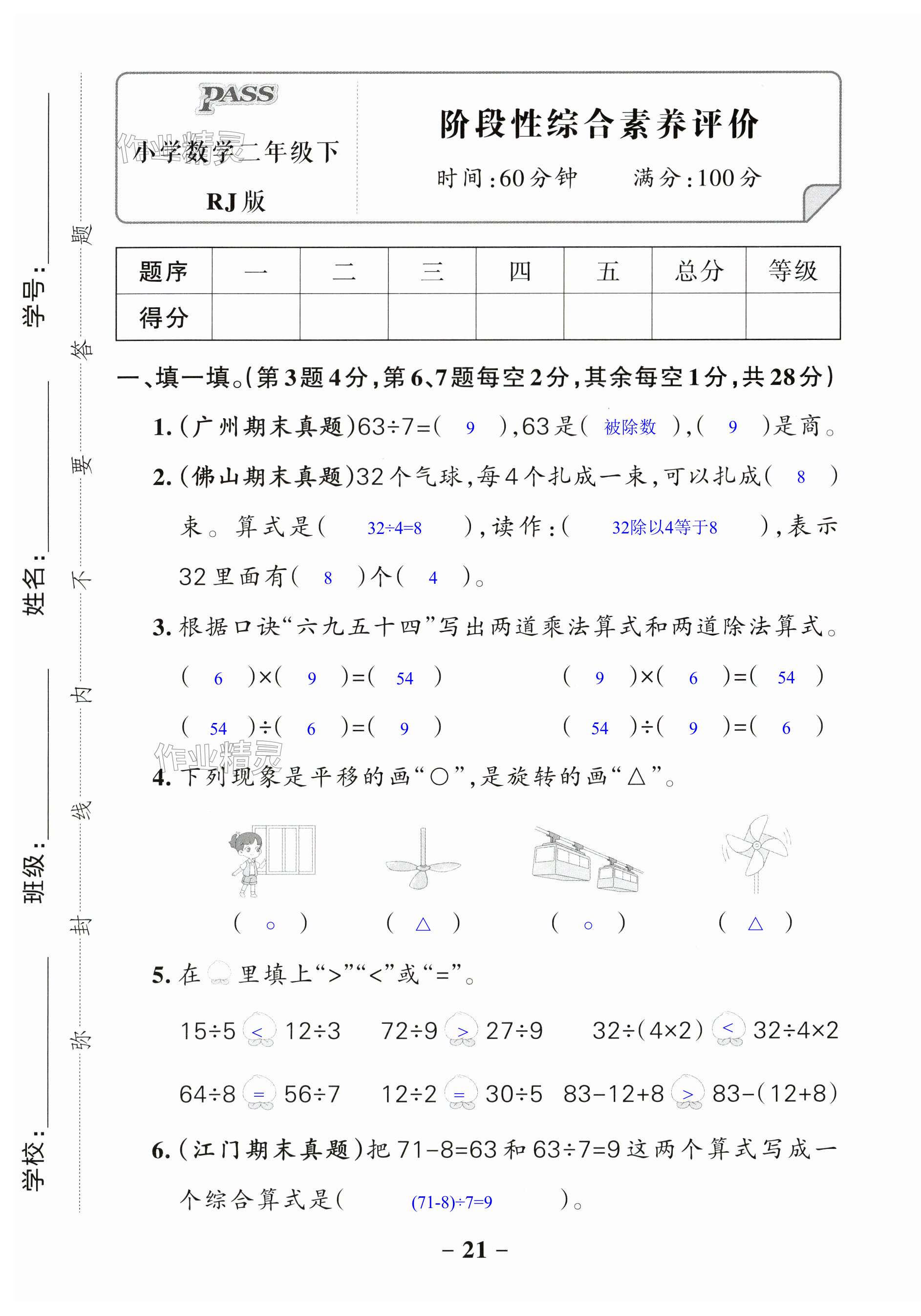 注:目前有些书本章节名称可能整理的还不是很完善,但都是按照顺序排列的,请同学们按照顺序仔细查找。练习册 2024年小学学霸作业本二年级数学下册人教版广东专版 答案主要是用来给同学们做完题方便对答案用的,请勿直接抄袭。