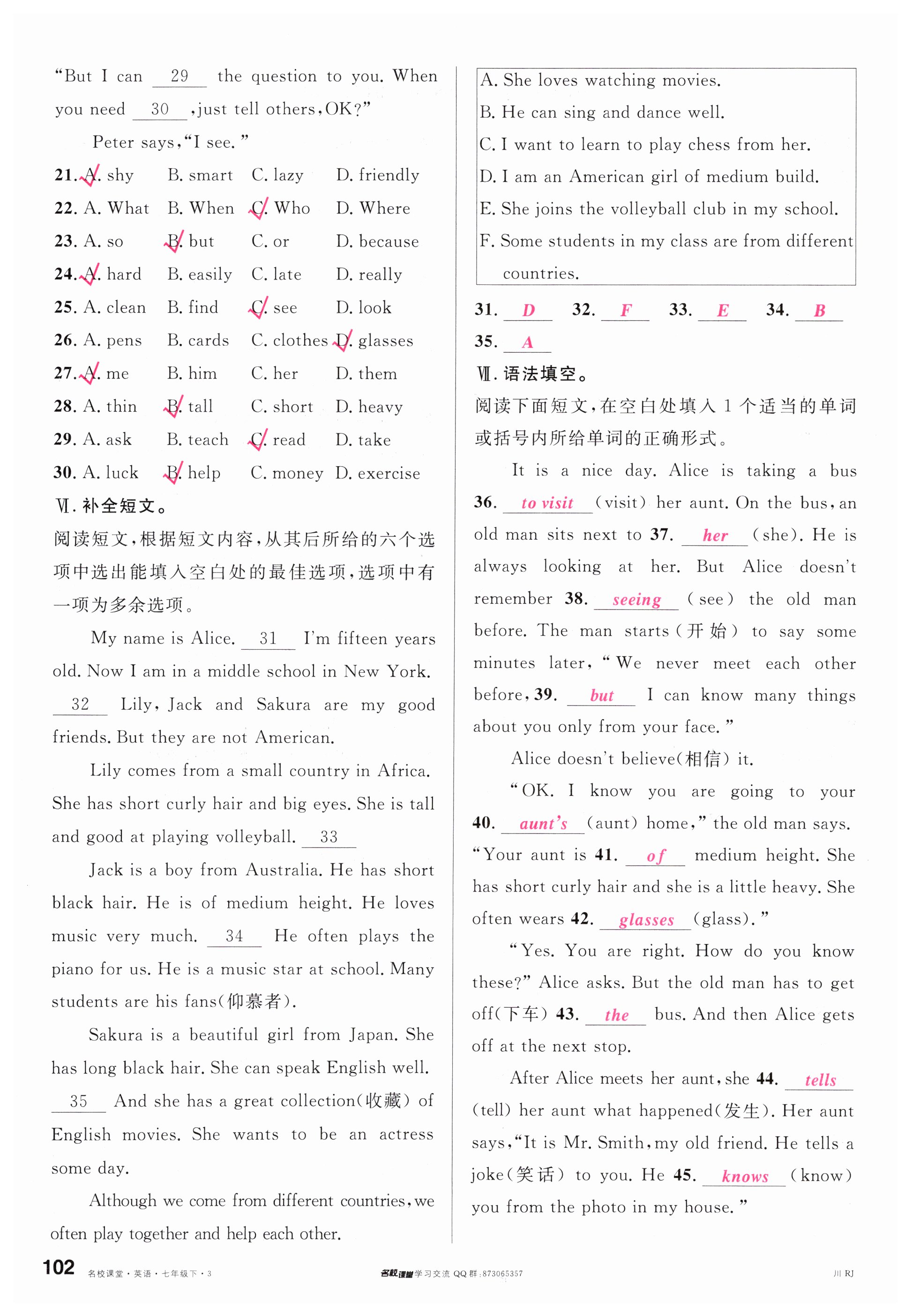 注:目前有些书本章节名称可能整理的还不是很完善,但都是按照顺序排列的,请同学们按照顺序仔细查找。练习册 2024年名校课堂七年级英语下册人教版四川专版 答案主要是用来给同学们做完题方便对答案用的,请勿直接抄袭。