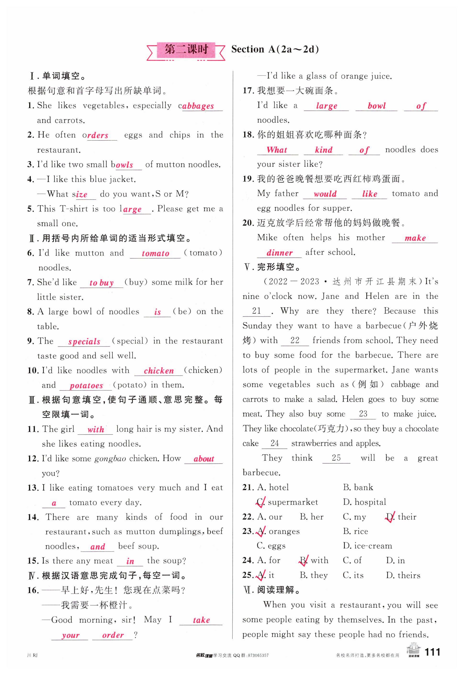 注:目前有些书本章节名称可能整理的还不是很完善,但都是按照顺序排列的,请同学们按照顺序仔细查找。练习册 2024年名校课堂七年级英语下册人教版四川专版 答案主要是用来给同学们做完题方便对答案用的,请勿直接抄袭。