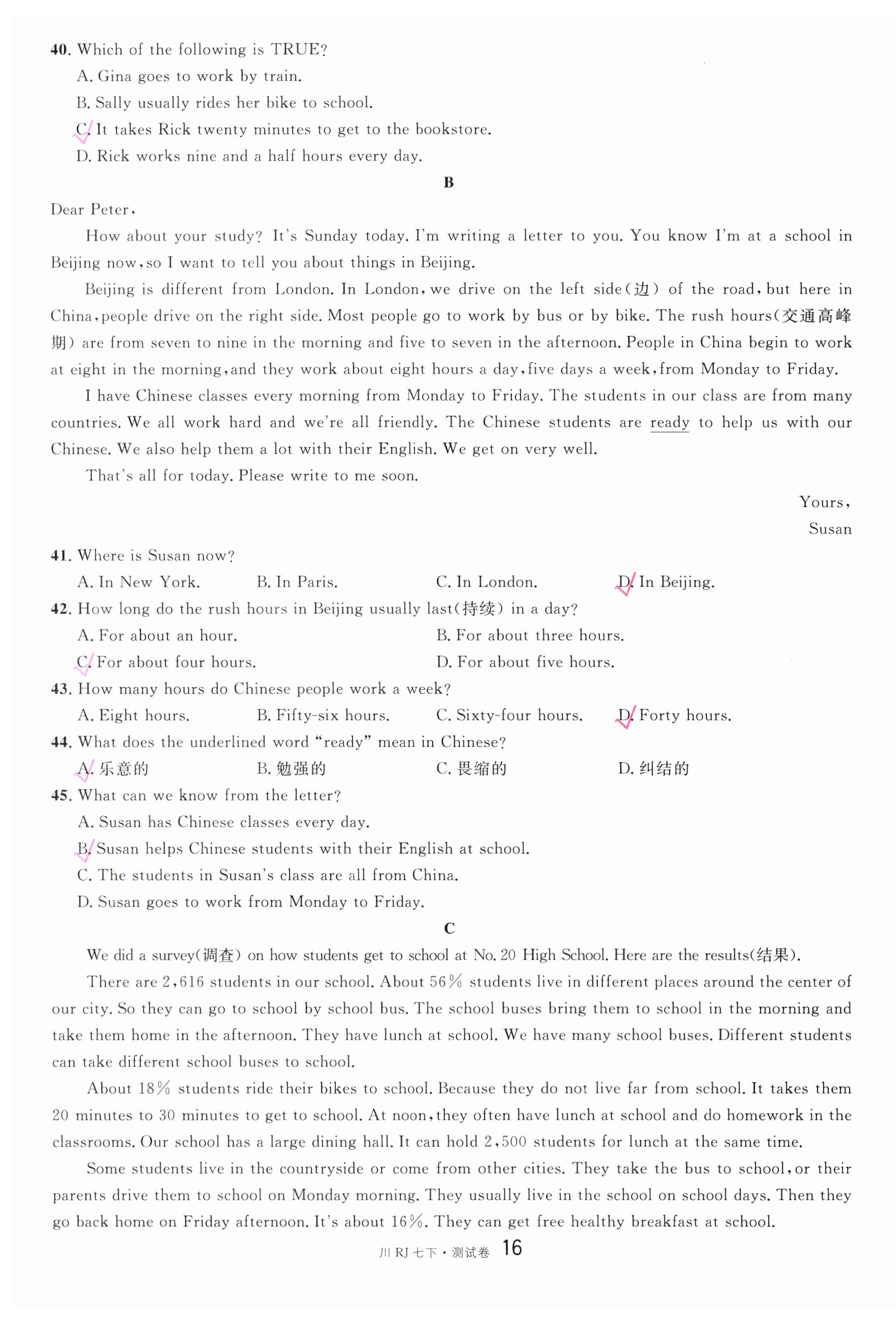 注:目前有些书本章节名称可能整理的还不是很完善,但都是按照顺序排列的,请同学们按照顺序仔细查找。练习册 2024年名校课堂七年级英语下册人教版四川专版 答案主要是用来给同学们做完题方便对答案用的,请勿直接抄袭。